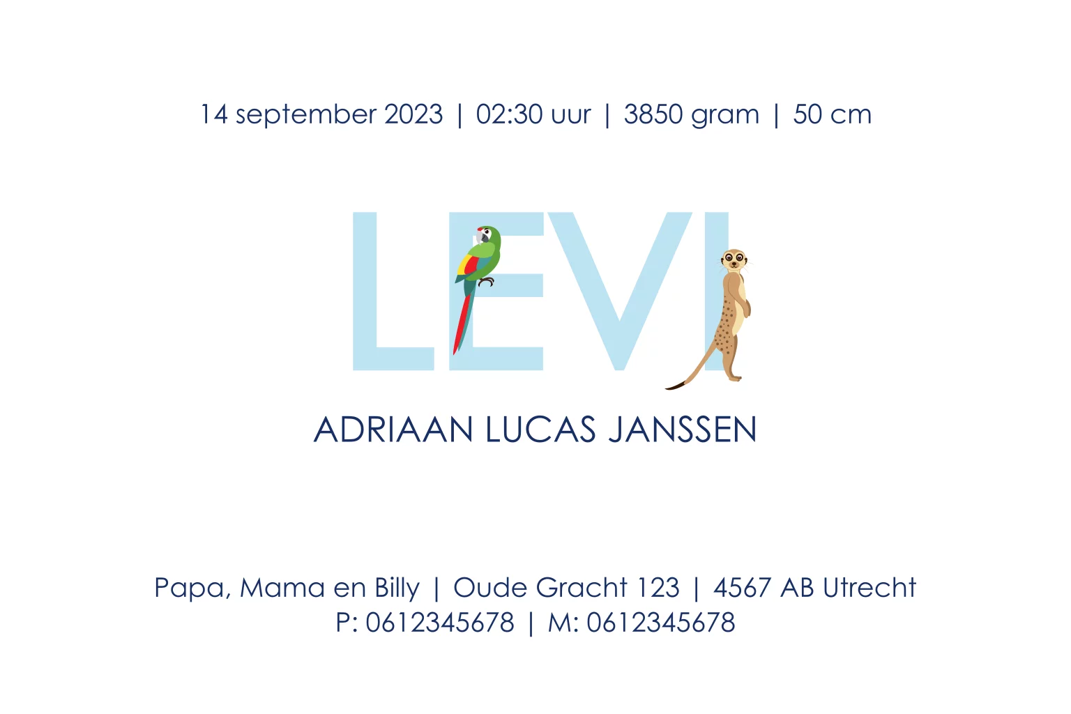 Geboortekaartje met jungle dieren voor een jongen