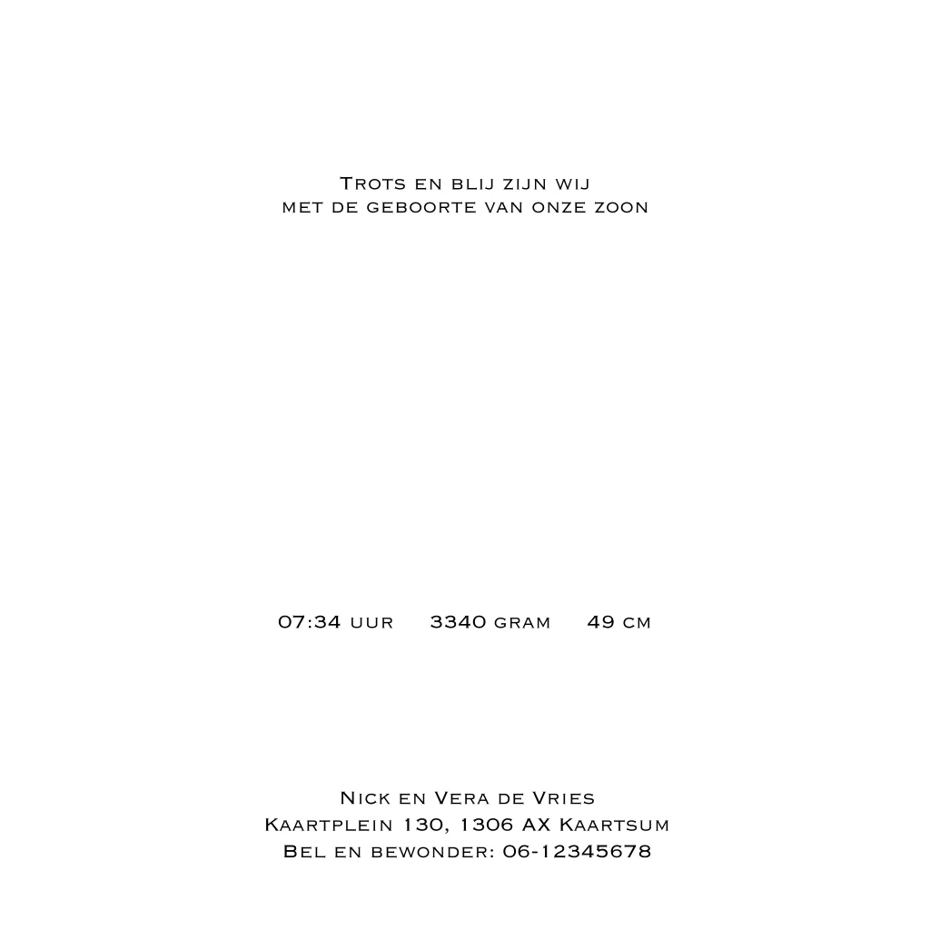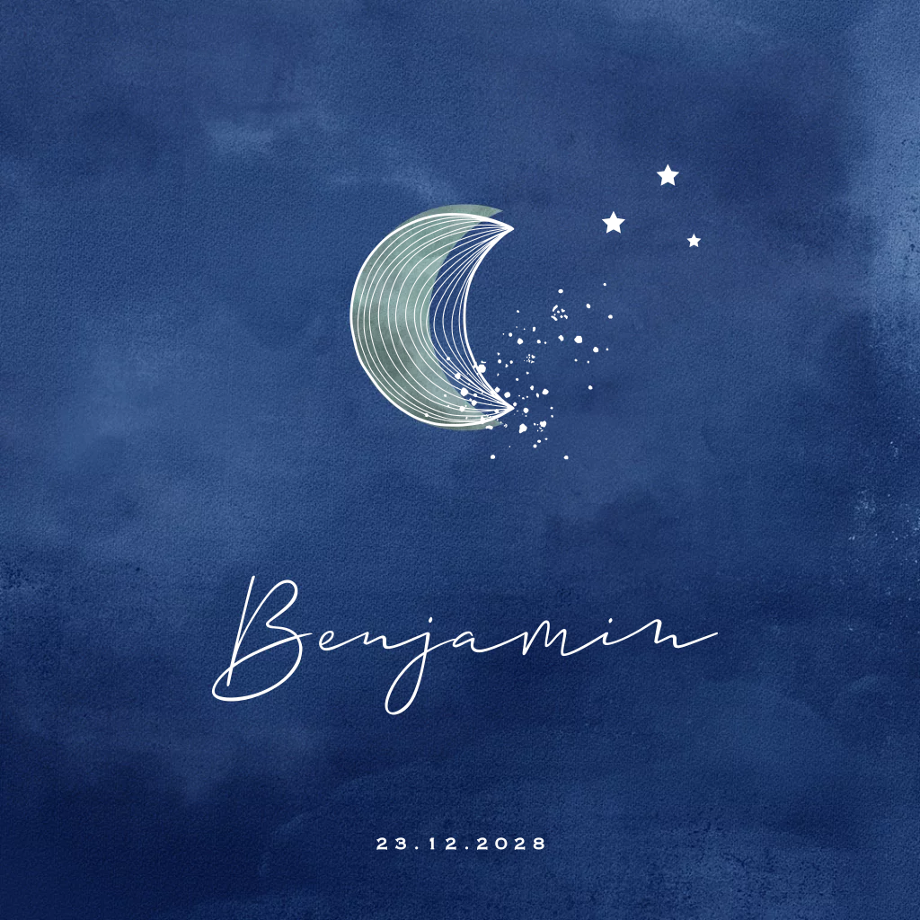 Jongens geboortekaartje met maan en sterretjes in foliedruk.