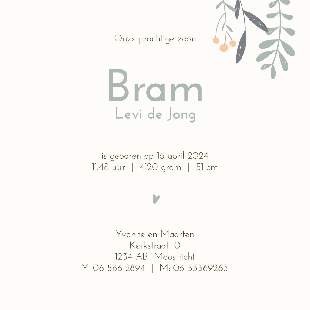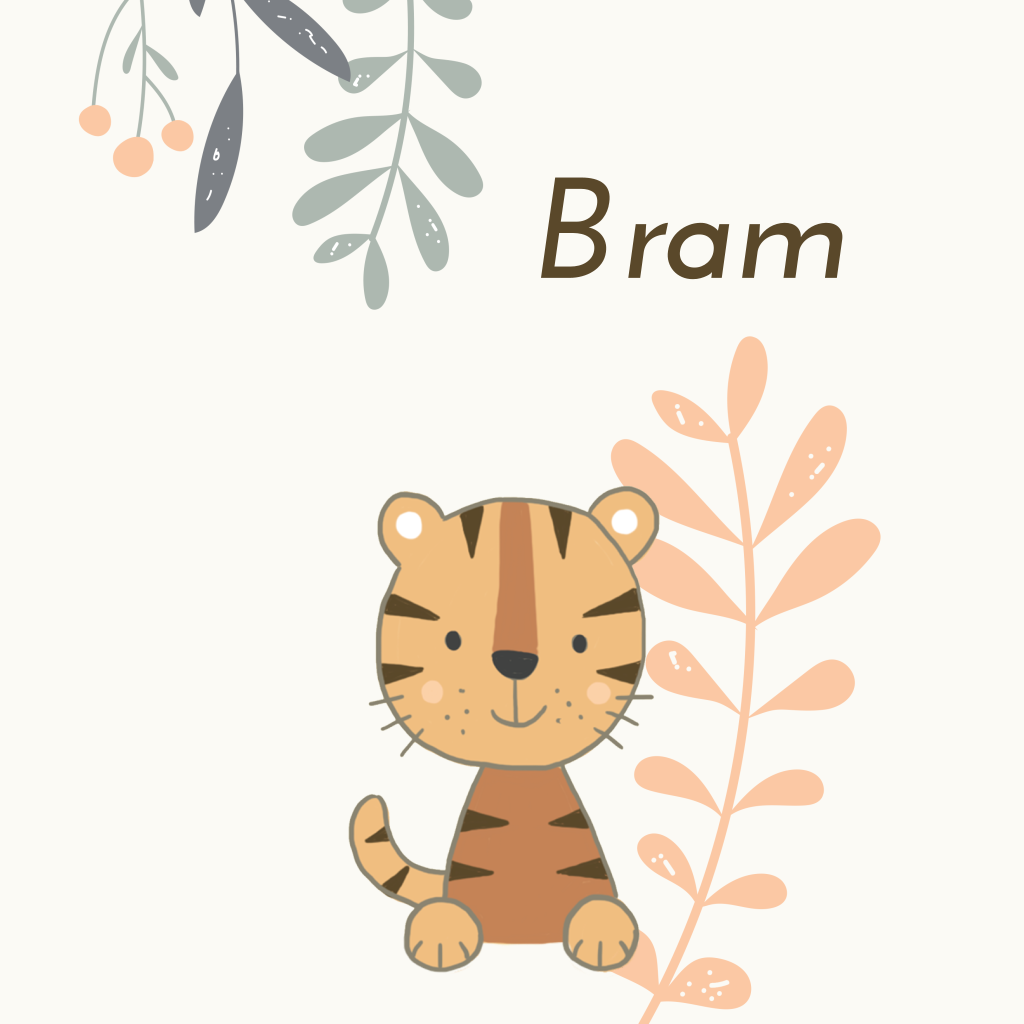 Lief geboortekaartje met een getekend tijgertje. Voor een jongen. (3907)