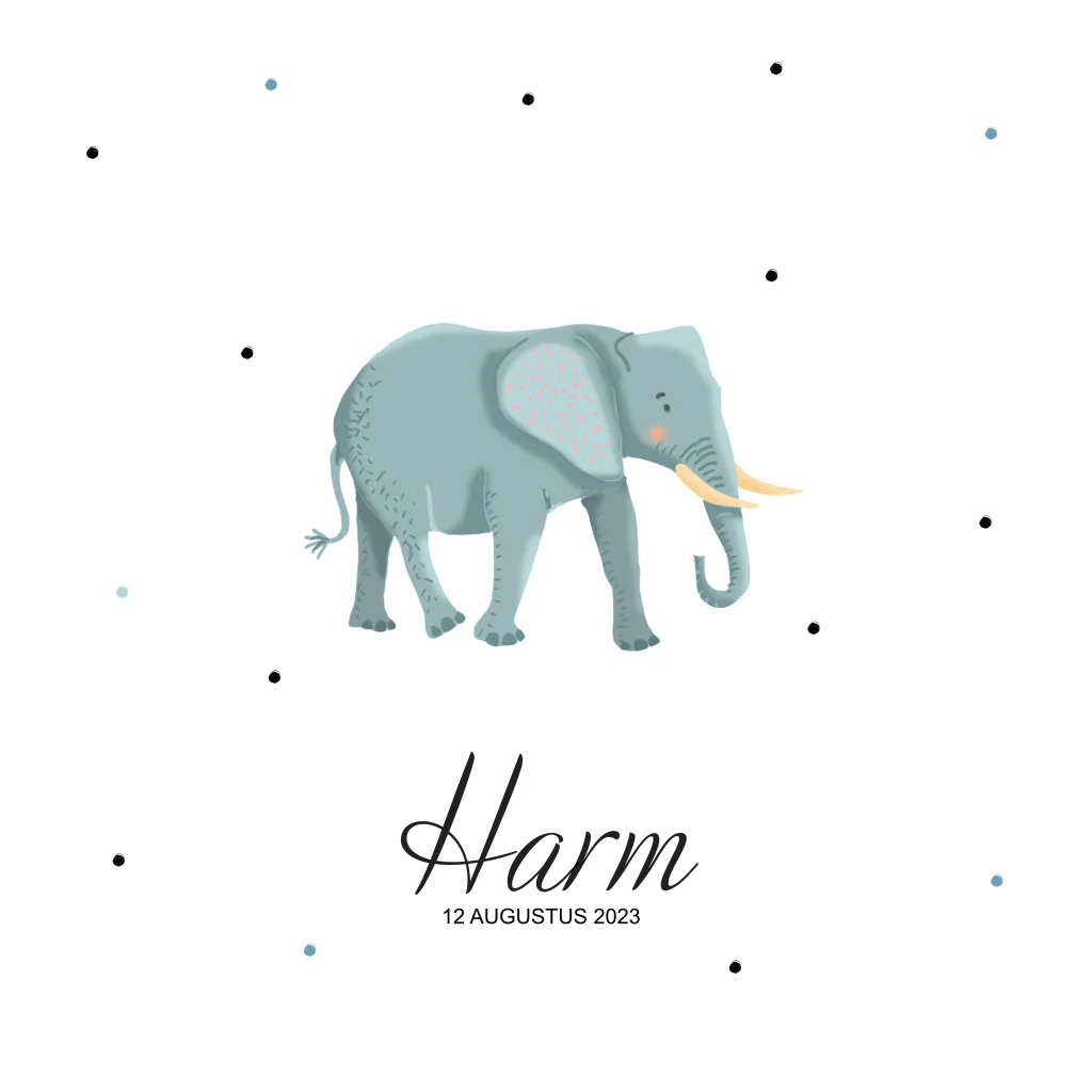 Geboortekaartje voor een jongen met olifant