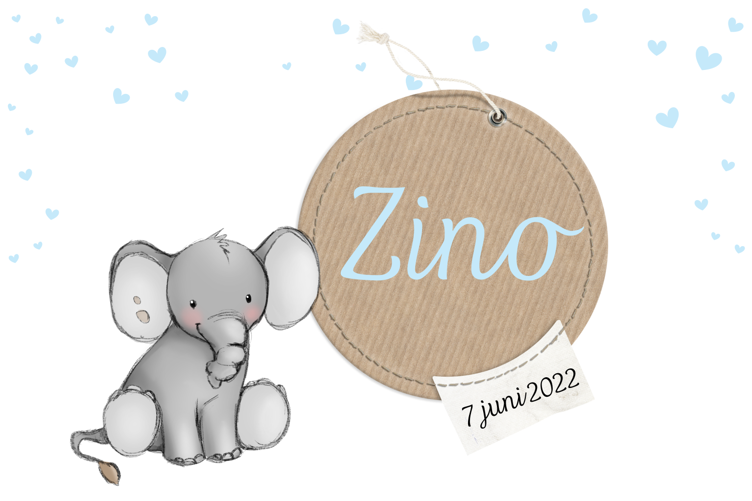 Vrolijk geboortekaartje met stoer label en een lieve olifant. Wil je een lieve geboortekaart voor een jongen, dan is dit echt een gave kans.
