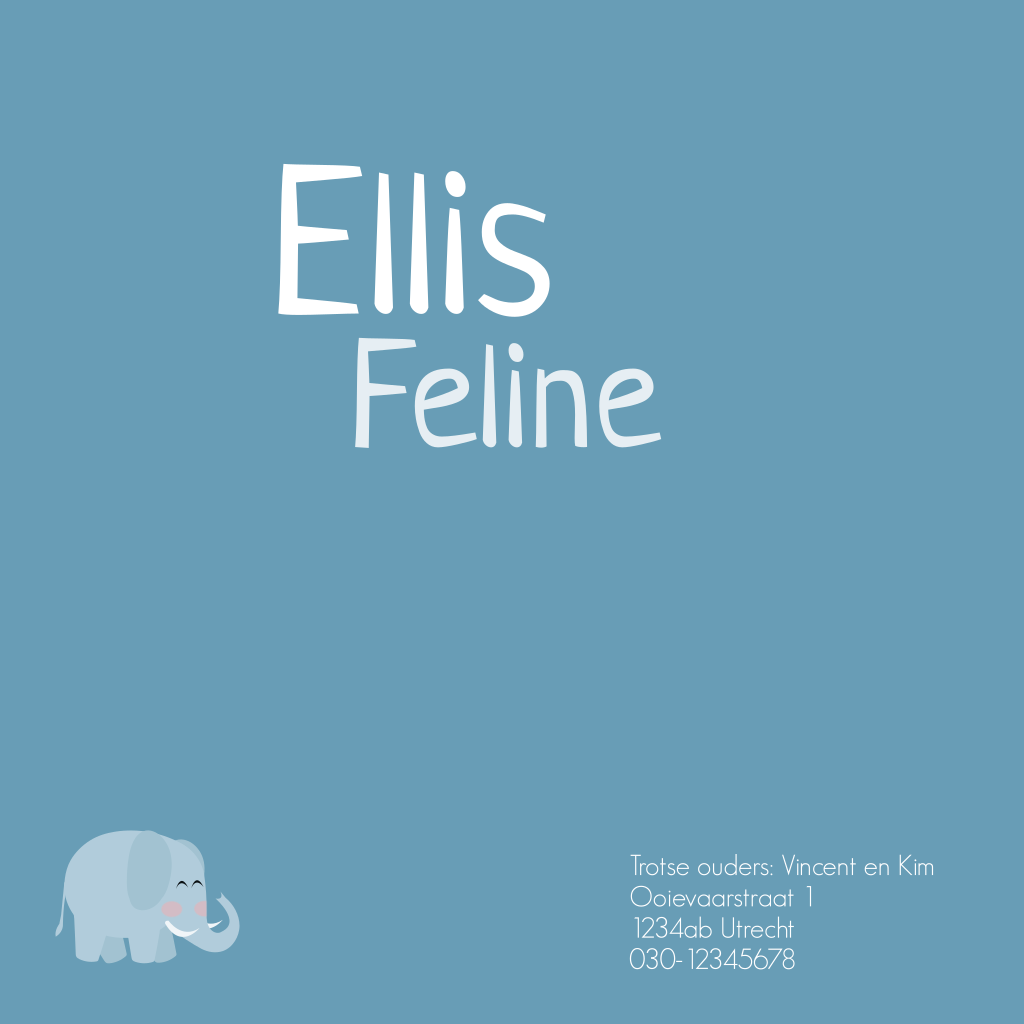Lief geboortekaartje voor een jongetje met een getekende olifant. (3697)