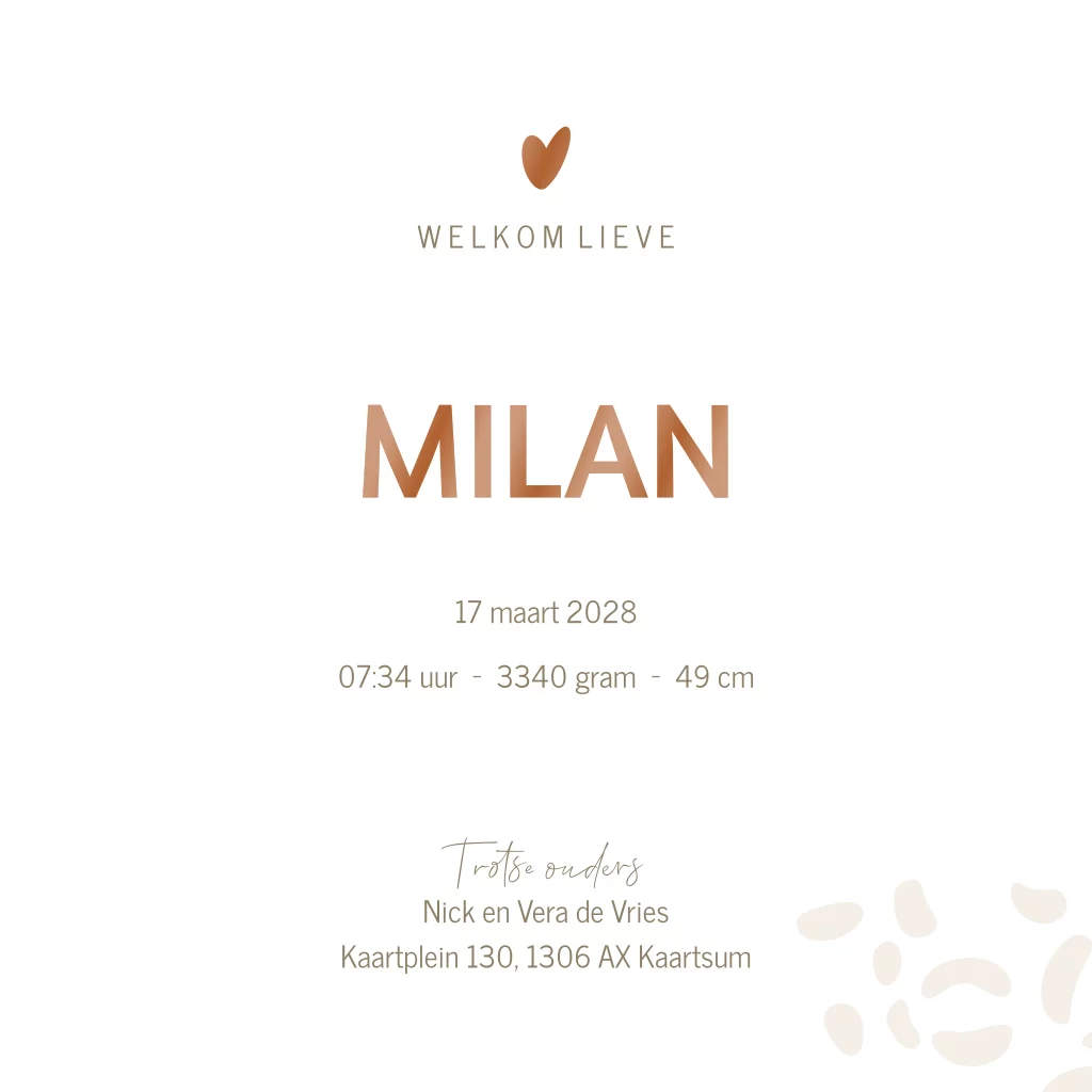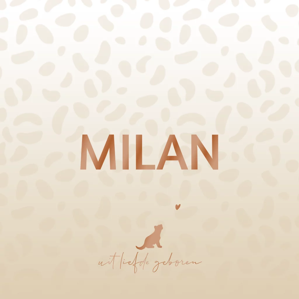 Hip geboortekaartje jongen met panterprint in aardekleuren