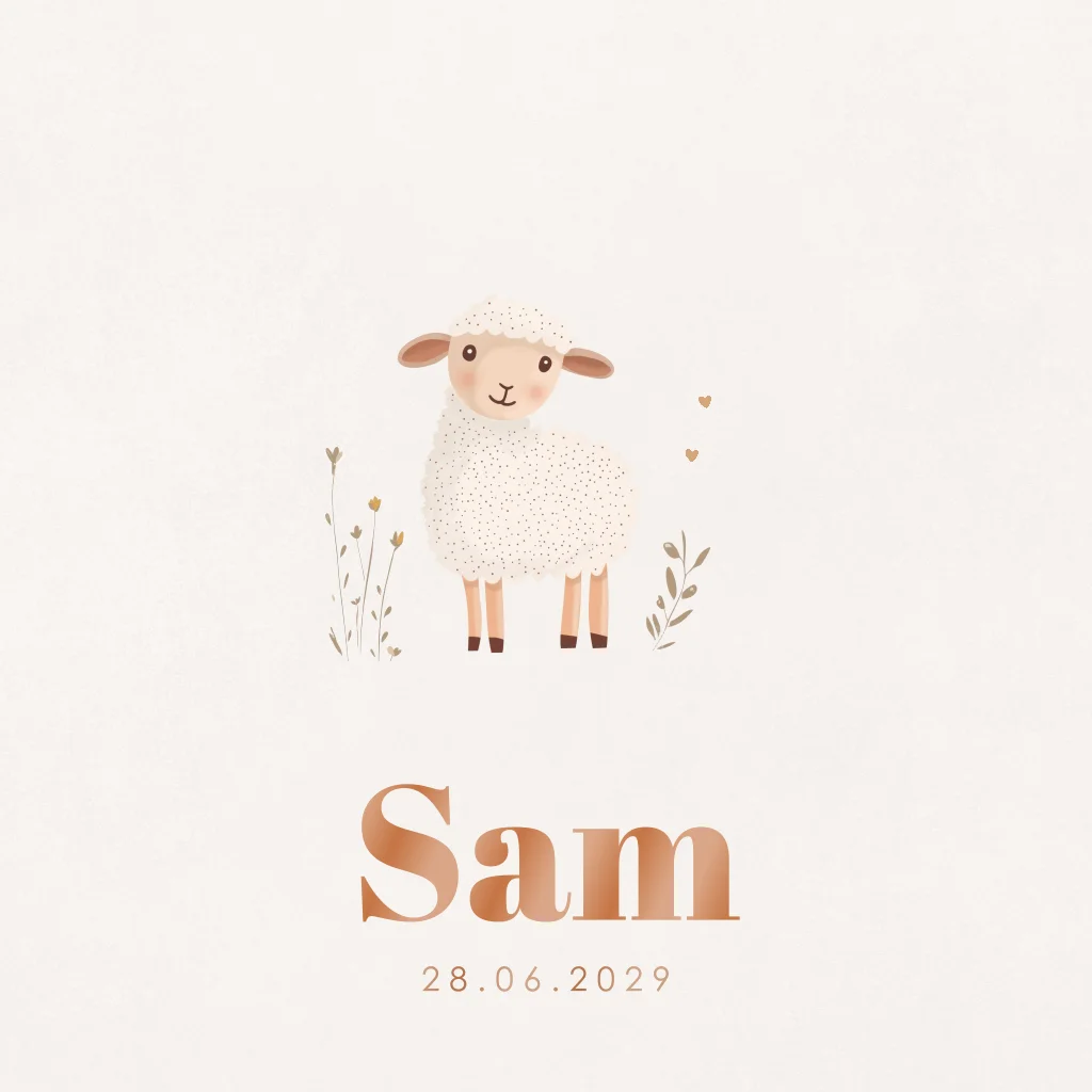 Geboortekaartje schaapje met takjes. Kan zowel voor een jongen als meisje gebruikt worden.