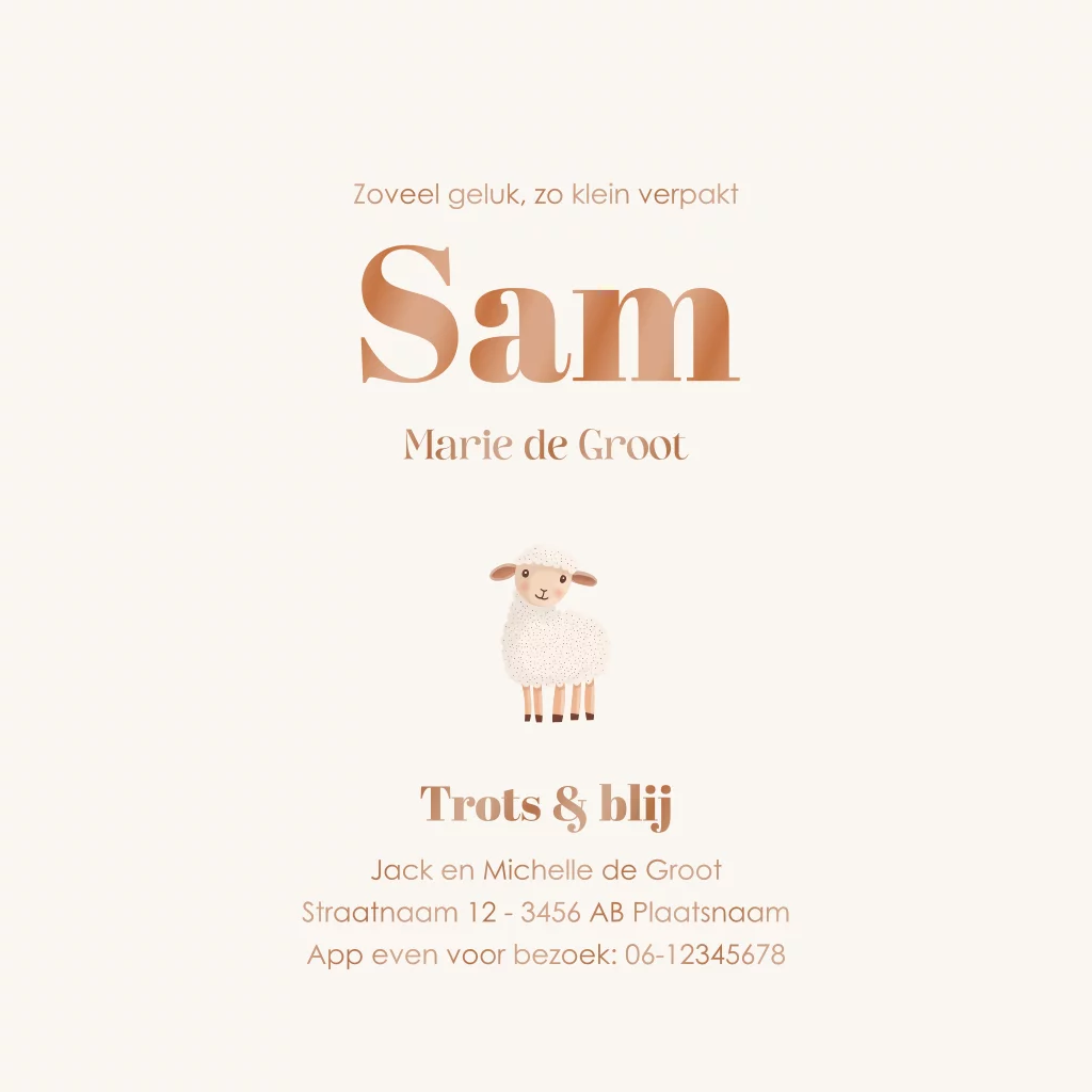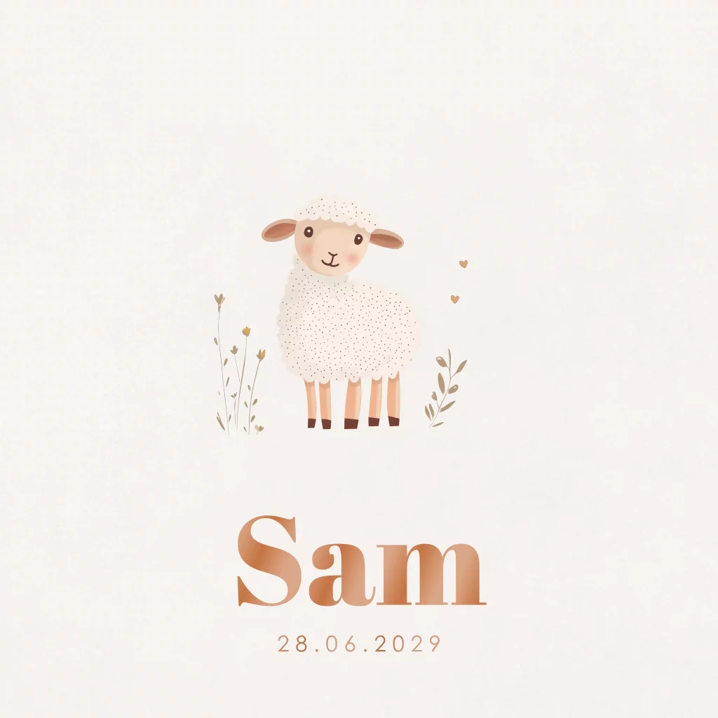 Geboortekaartje schaapje met takjes. Kan zowel voor een jongen als meisje gebruikt worden.