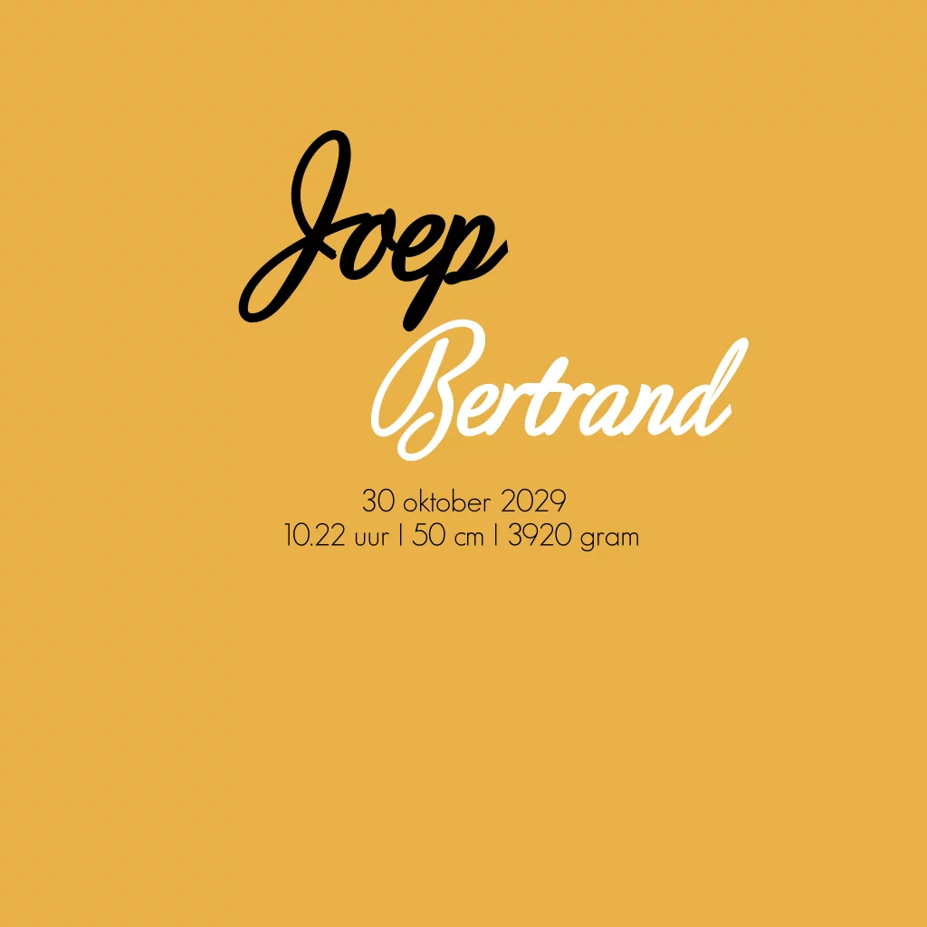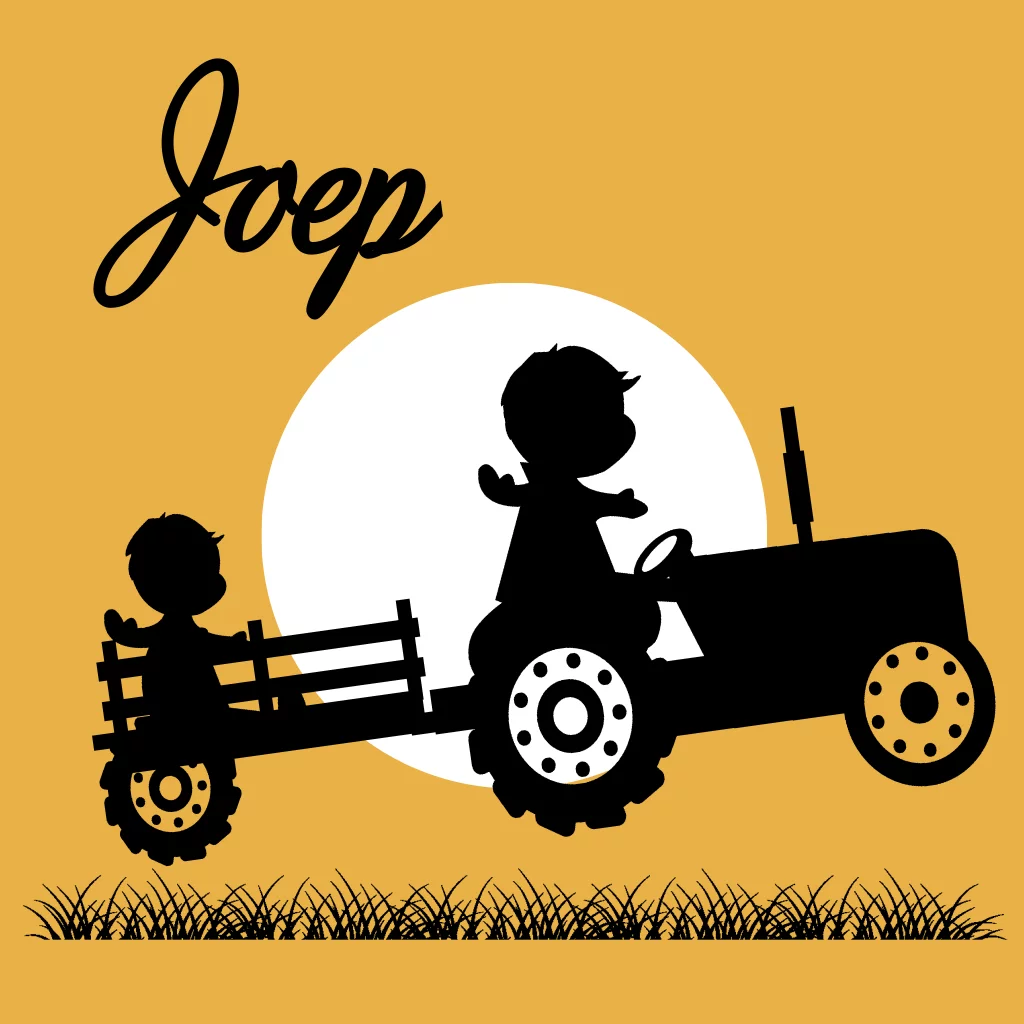 Lief geboortekaartje voor een jongetje, met een silhouet van een grote boer die zijn broertje op een tractor met aanhanger vervoert. Geschikt voor een tweede kindje. De achtergrondkleur is aan te passen. (3385)