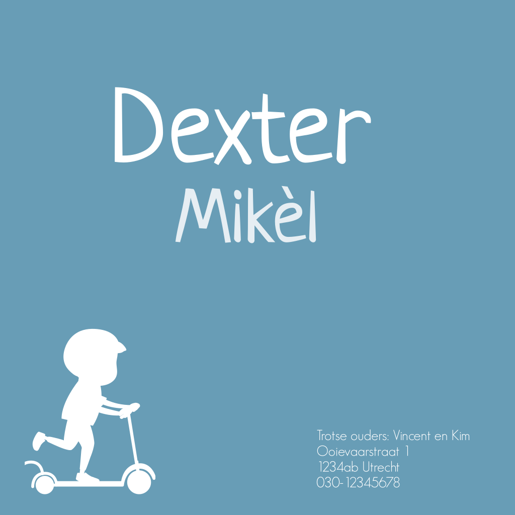 Lief eenvoudig geboortekaartje met een silhouette van een jongetje op een step. (3669)