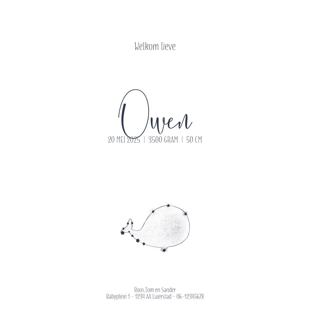 Geboortekaartje voor jongen met een walvis als sterrenbeeld. (234)