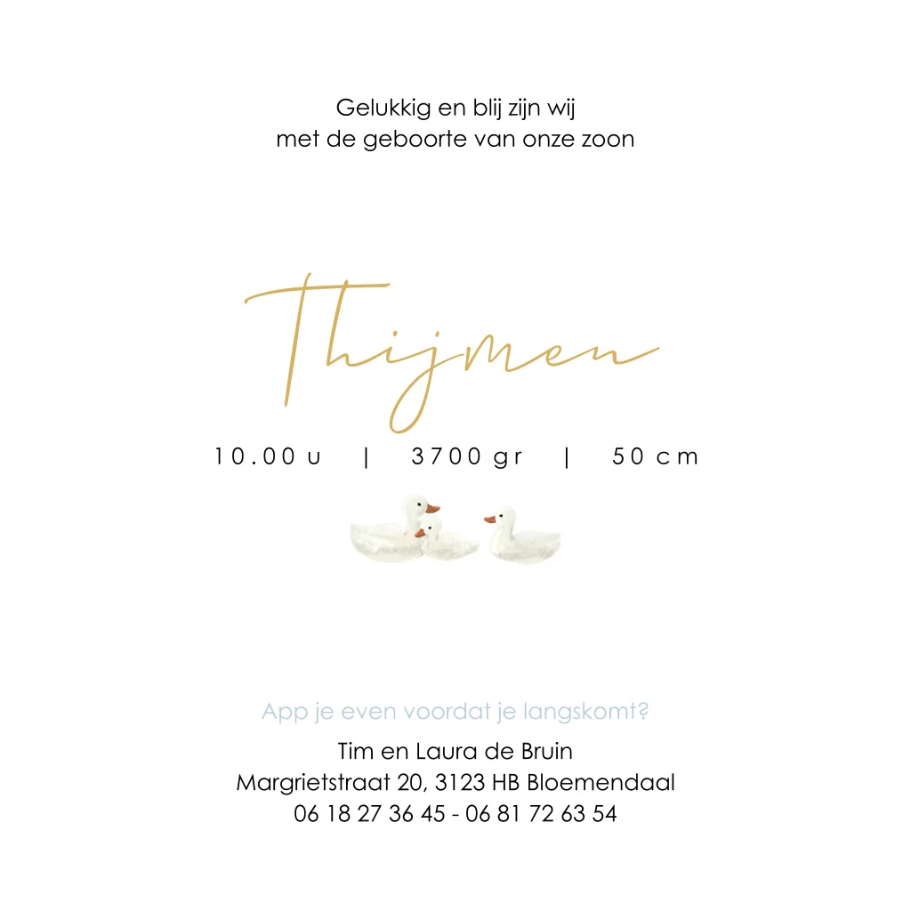 Geboortekaartje jongen met ganzen