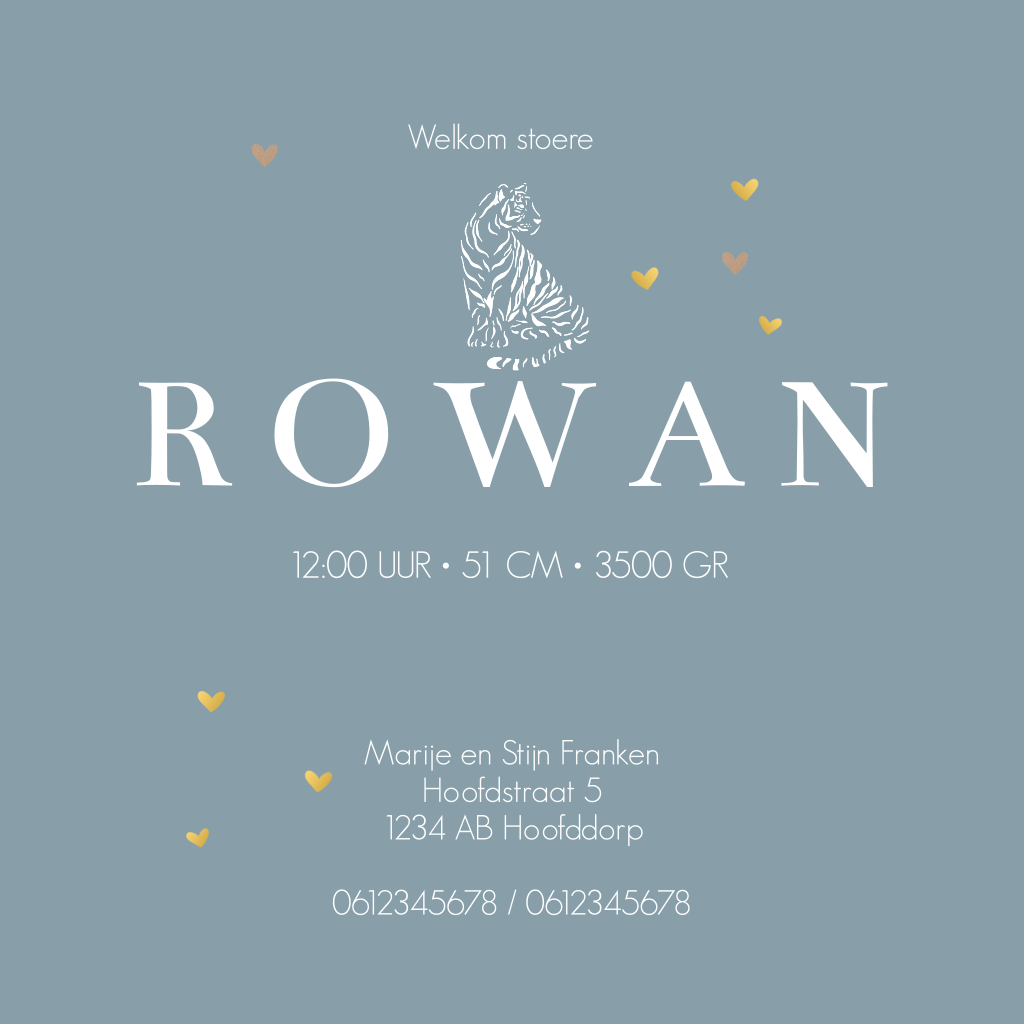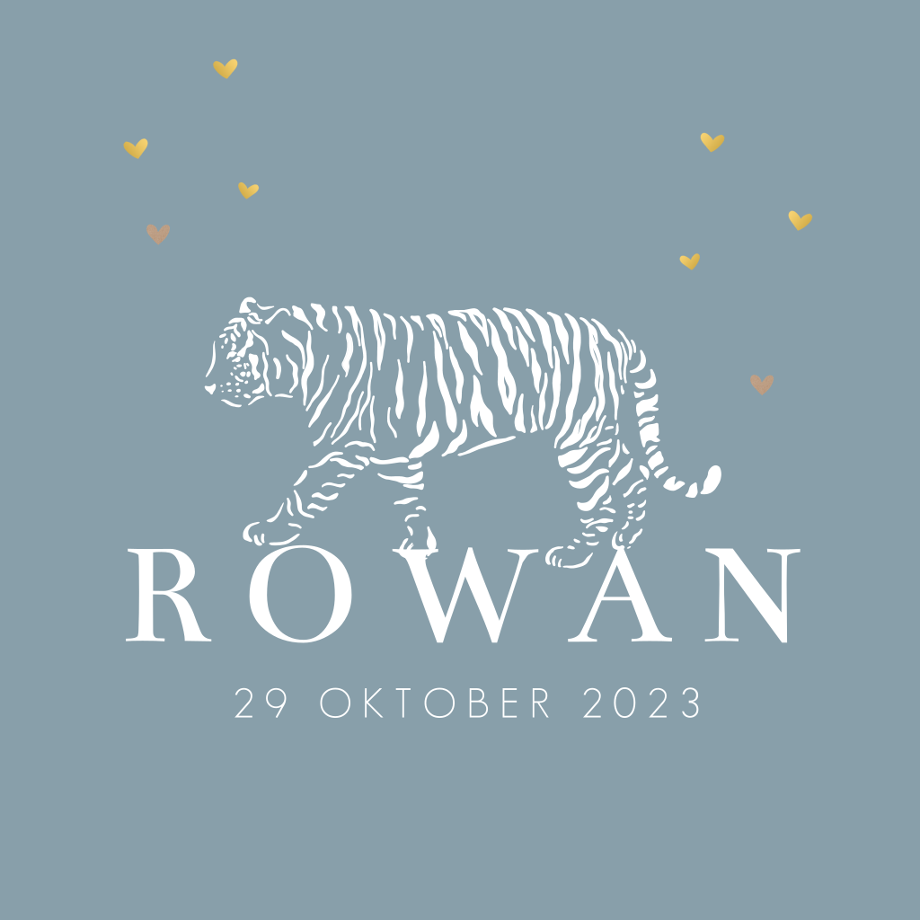 Geboortekaartje voor een jongetje met tijger met hartjes. (3171)
