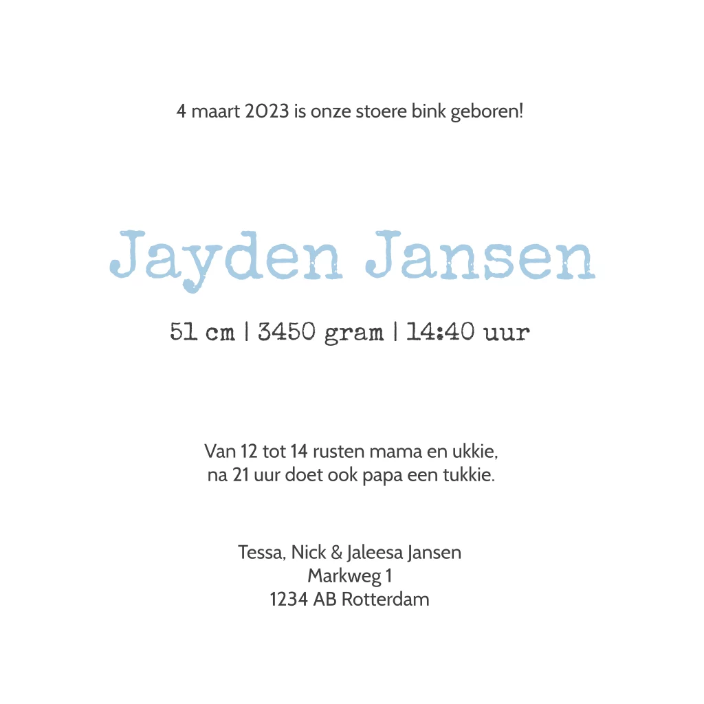 Klassiek geboortekaartje met voetjes voor jongen