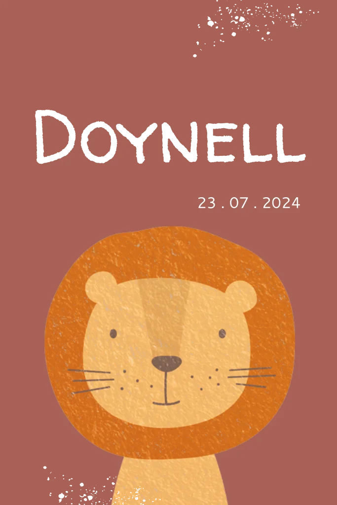 Geboortekaartje jongen met een prachtige tekening van een leeuwtje. (4582)