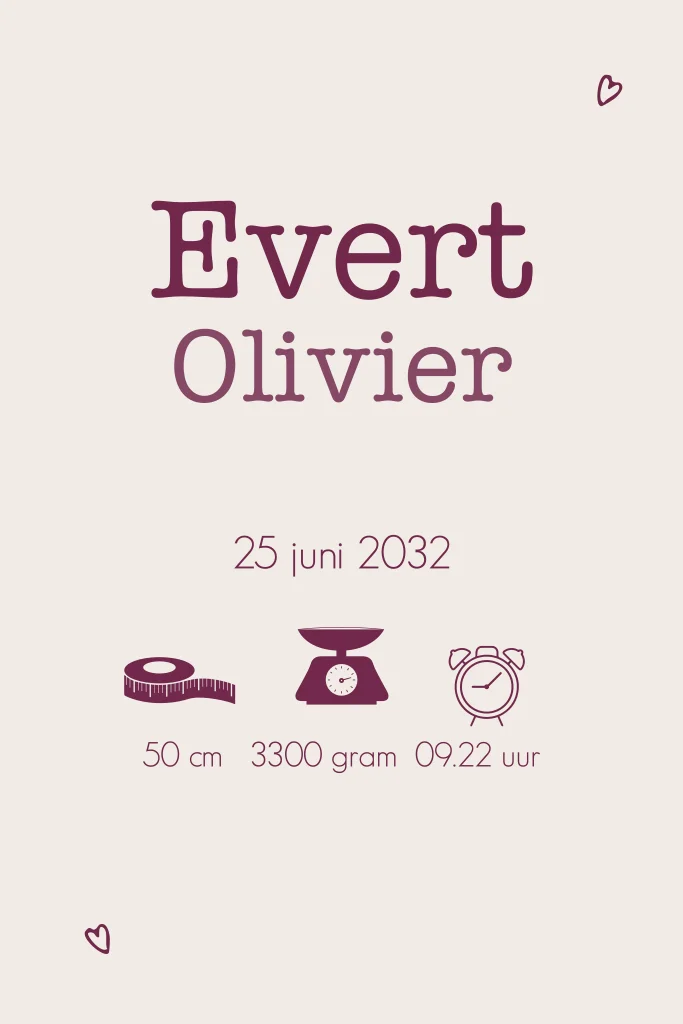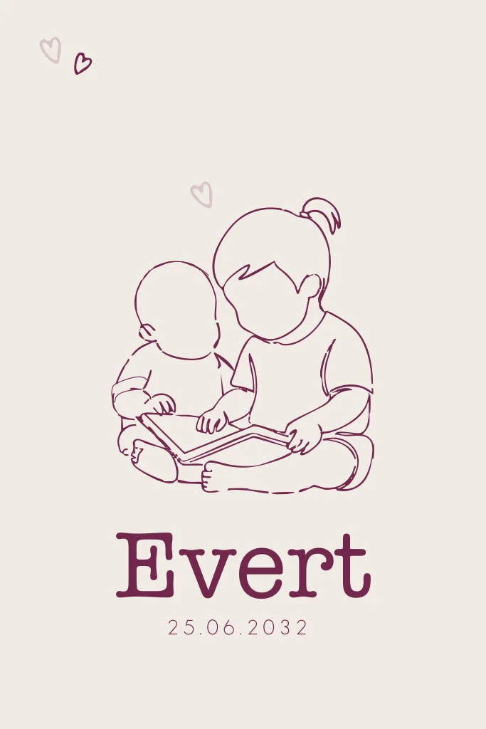 Lief geboortekaartje voor broer en zus, pas het ontwerp naar wens aan in onze online editor. Voor een tweede kindje.