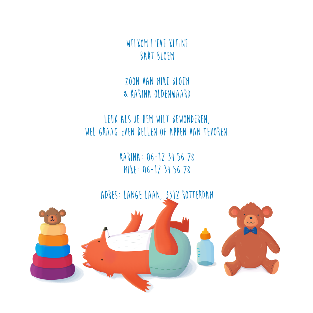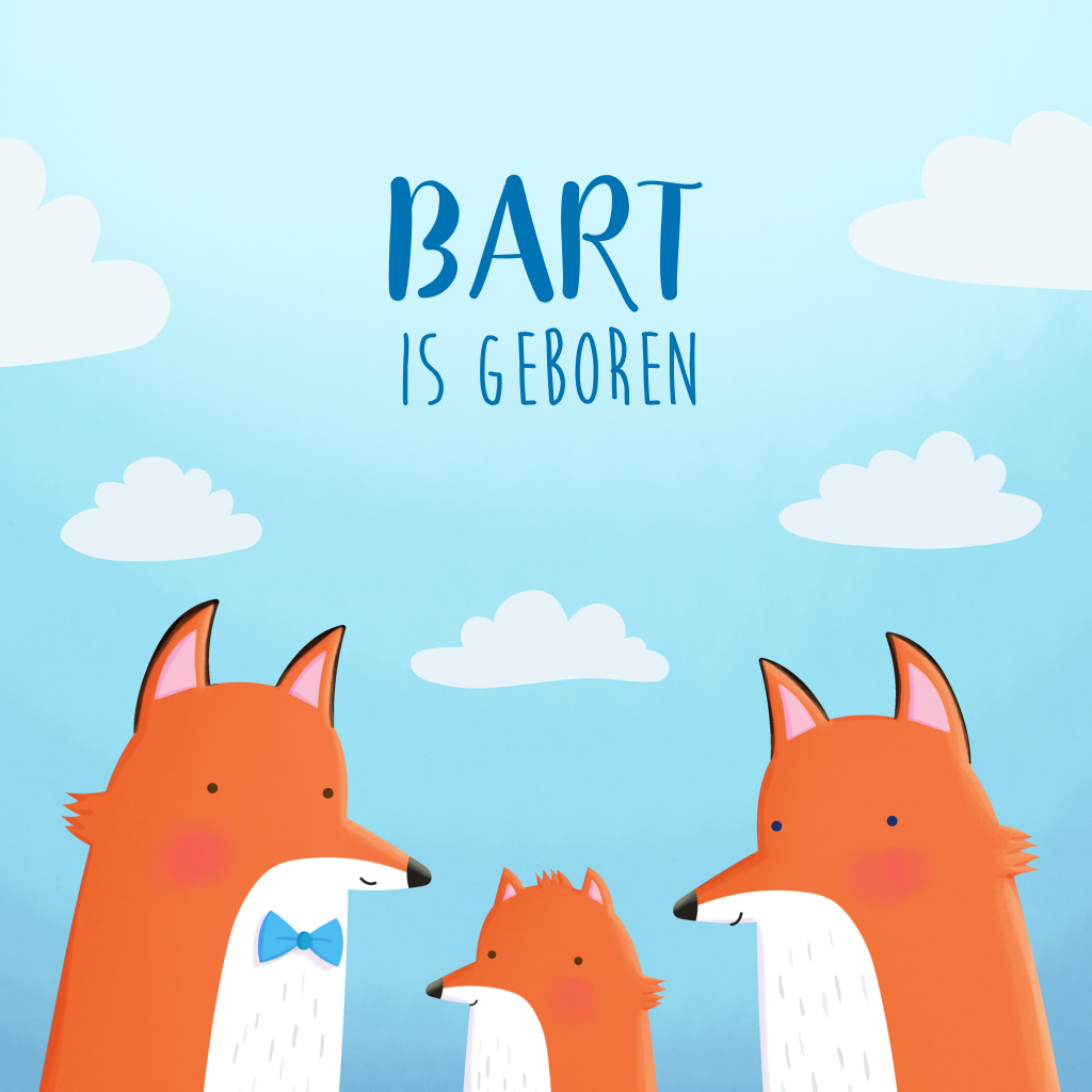 Geboortekaartje met vossen familie en wolkjes. Voor een jongen. (3289)