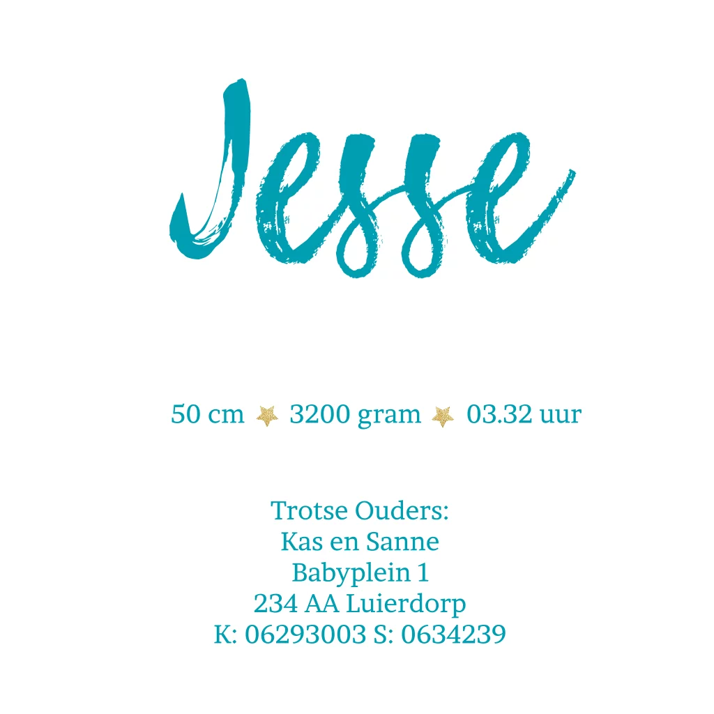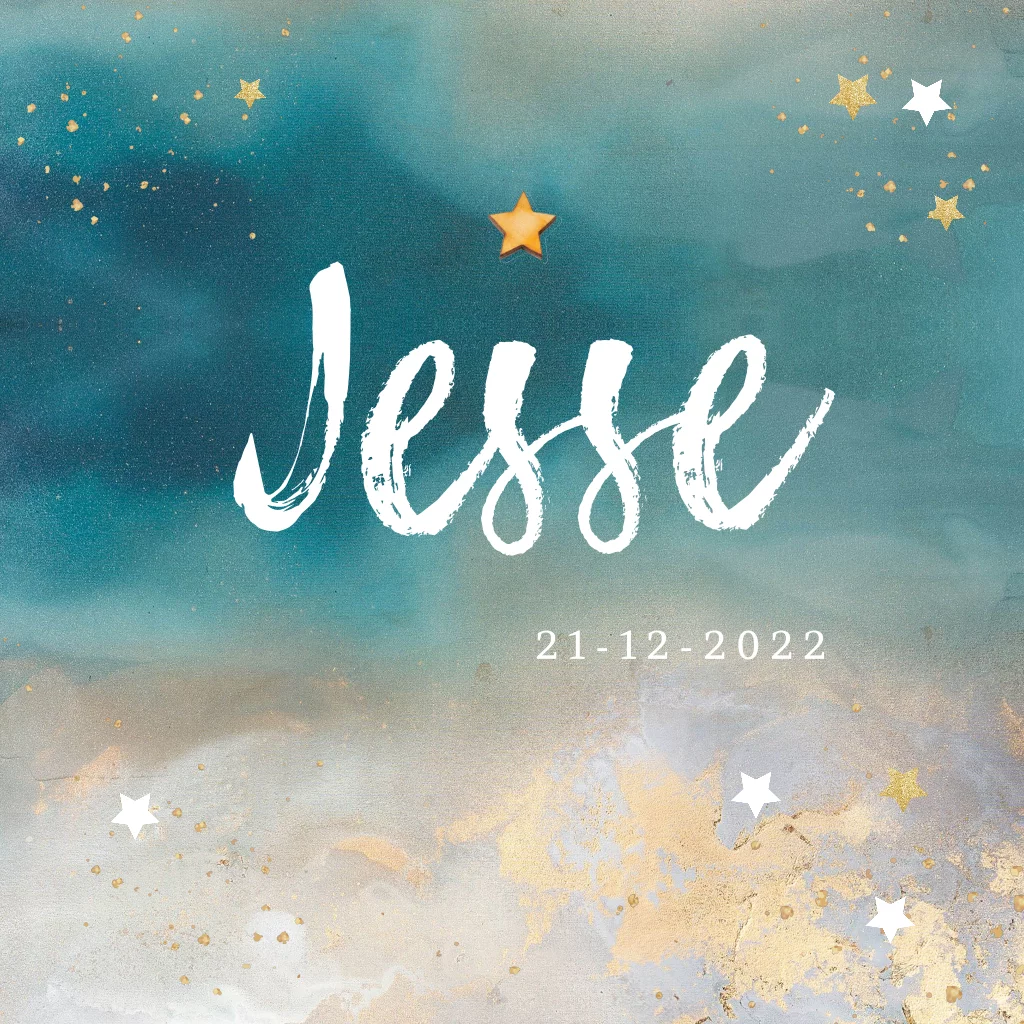 Geboortekaartje watercolour jongen met echt houten sterretje