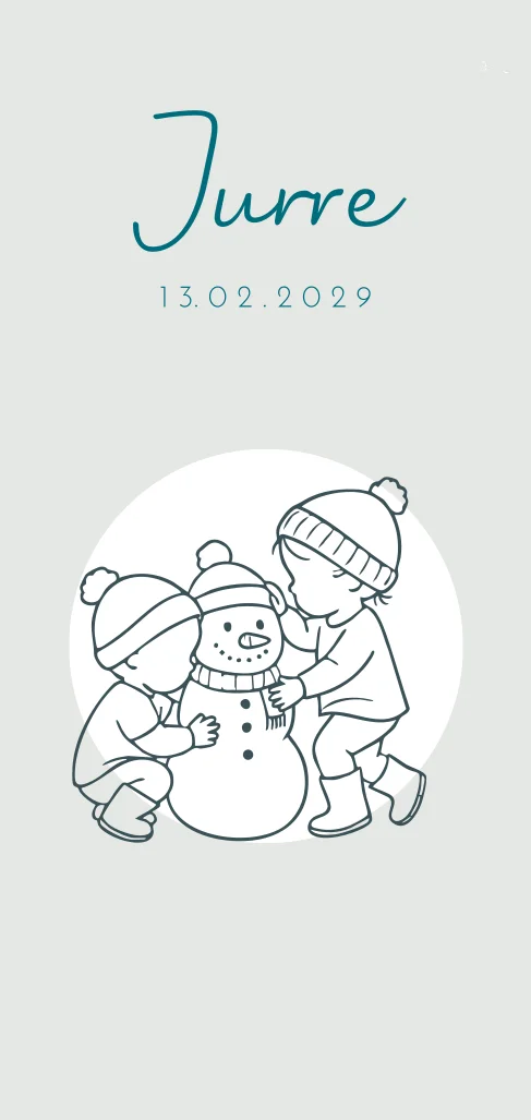 Vrolijk geboortekaartje met sneeuwpop in winter thema. Pas het ontwerp aan in onze online editor.