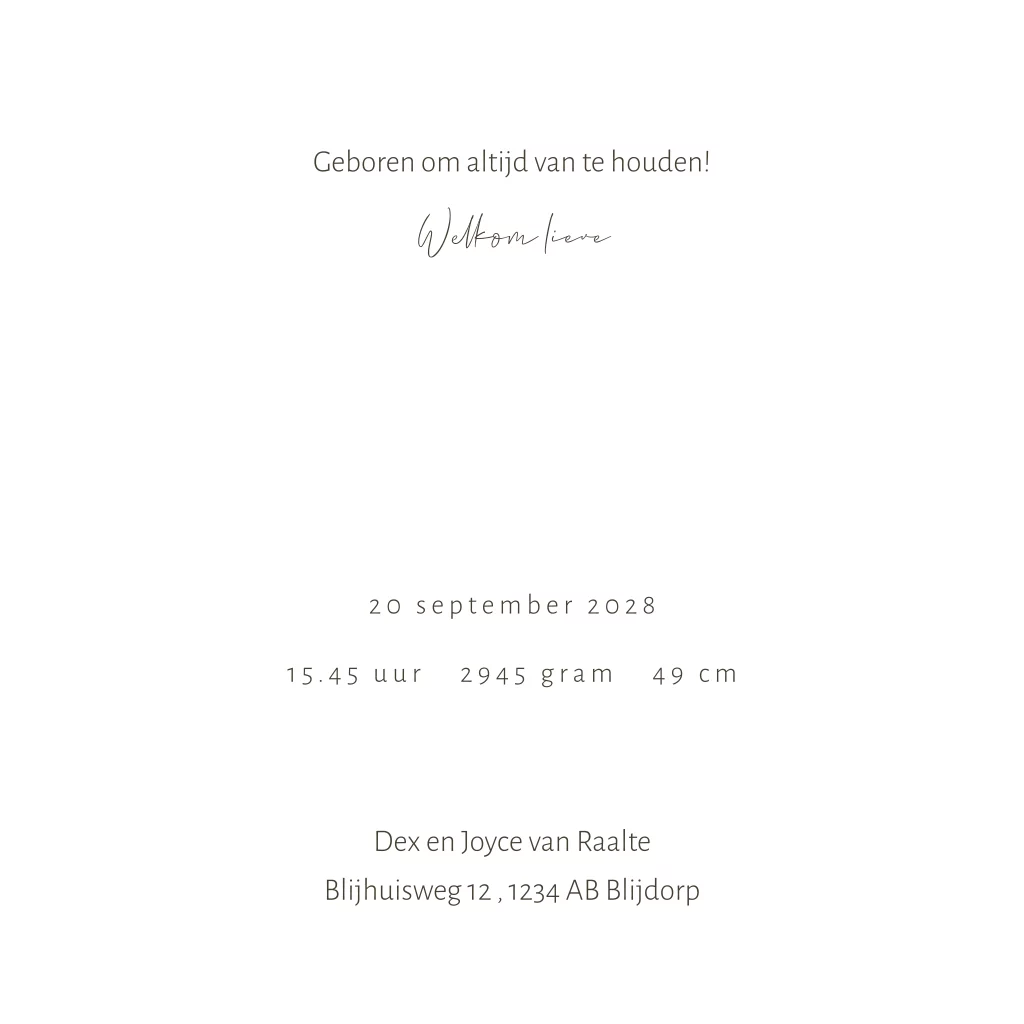 Geboortekaartje winterliefde jongen op tak met maan en sterren