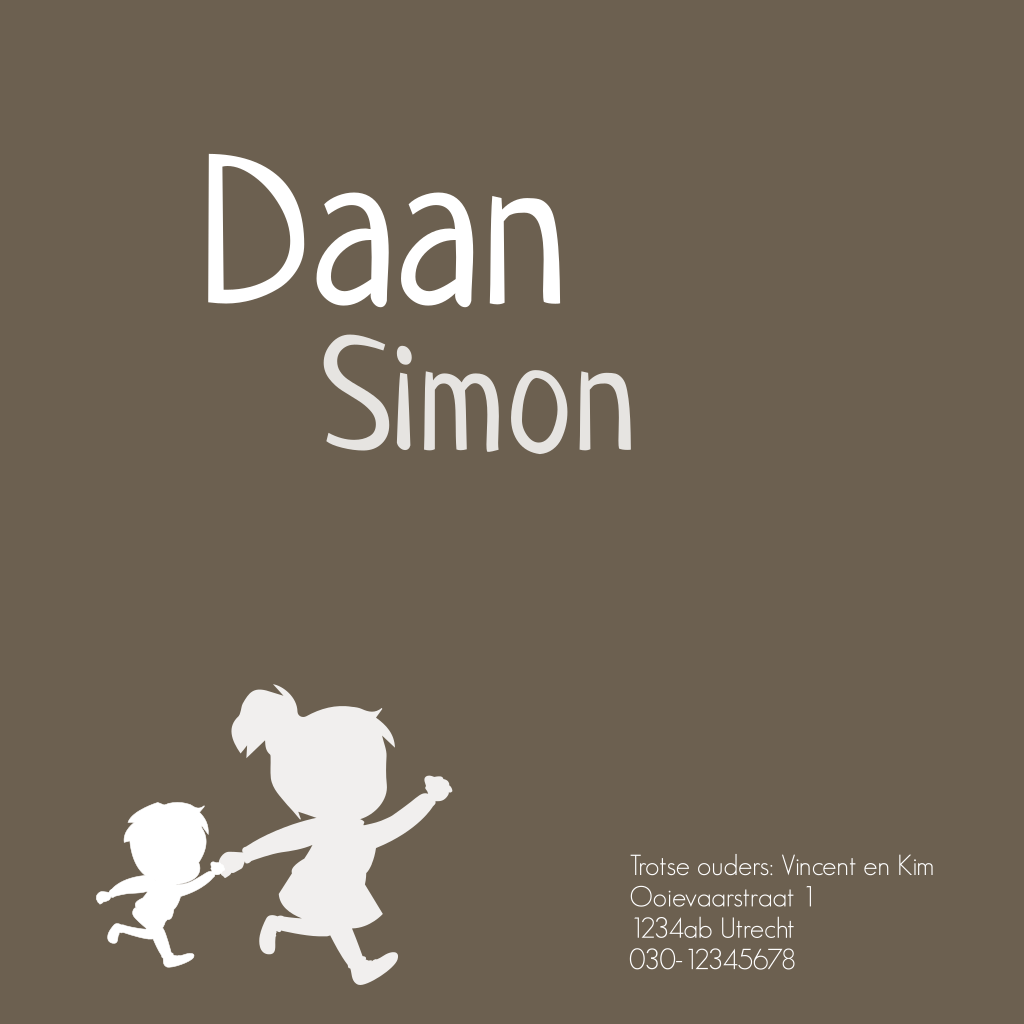 Geboortekaartje met zus broertje rennen silhouet hand in hand