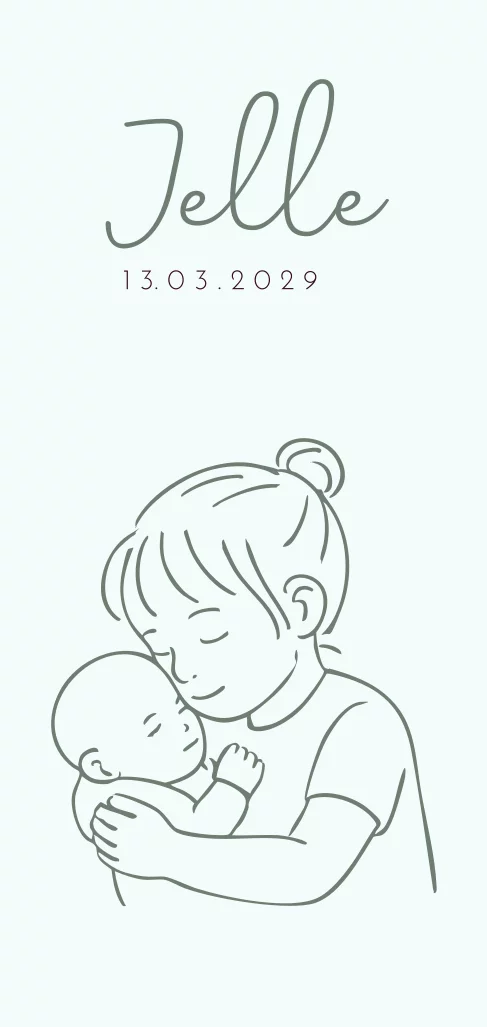 Groen geboortekaartje voor een jongen met grote zus