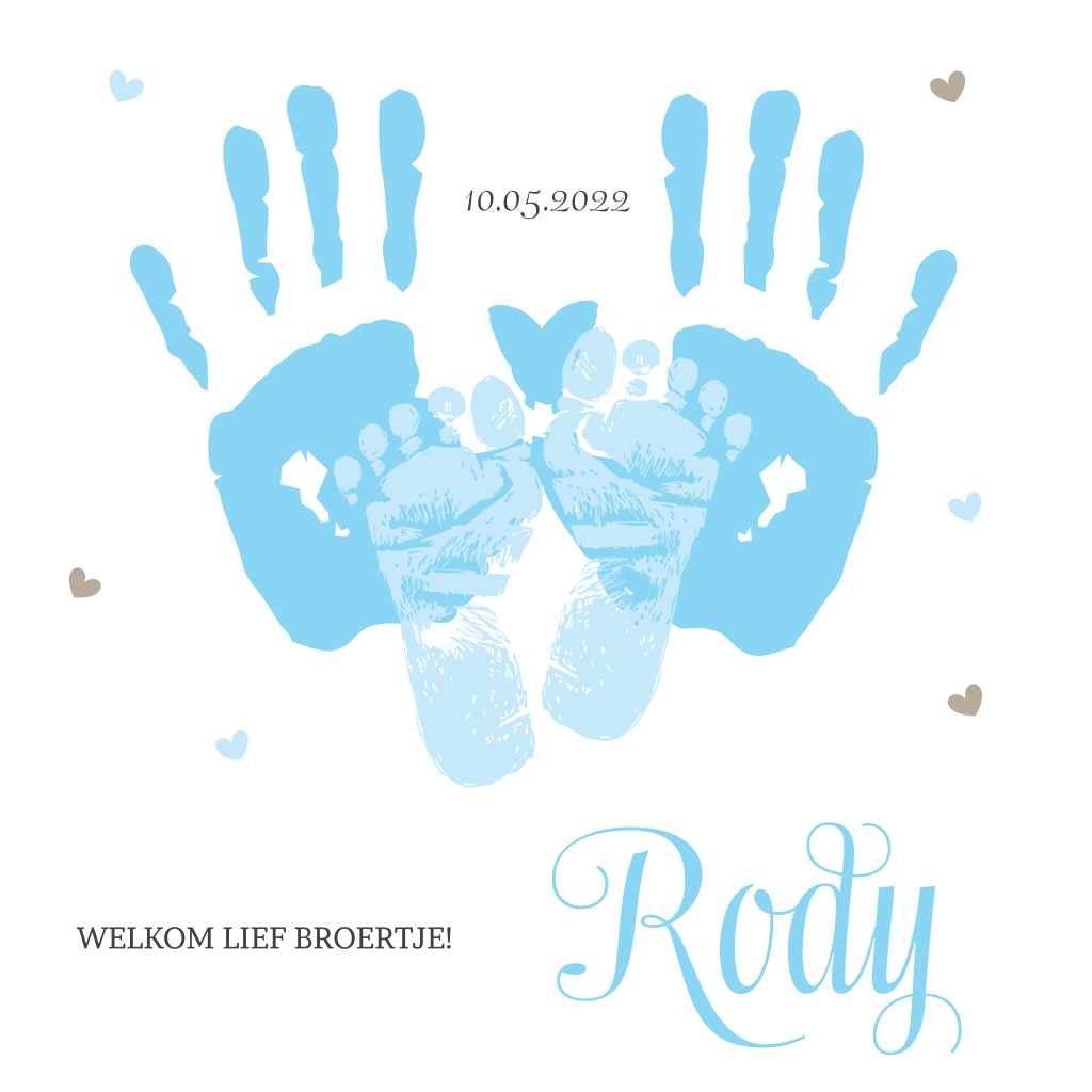 Geboortekaartje voor jongen met geverfde handen en voetjes