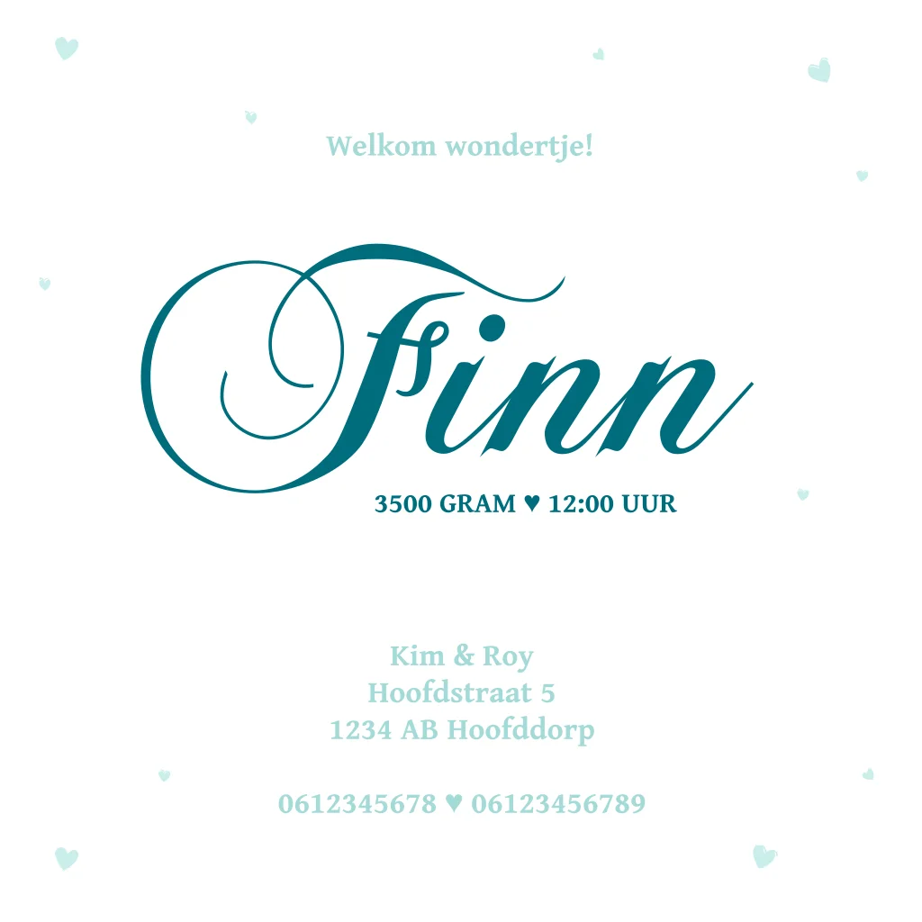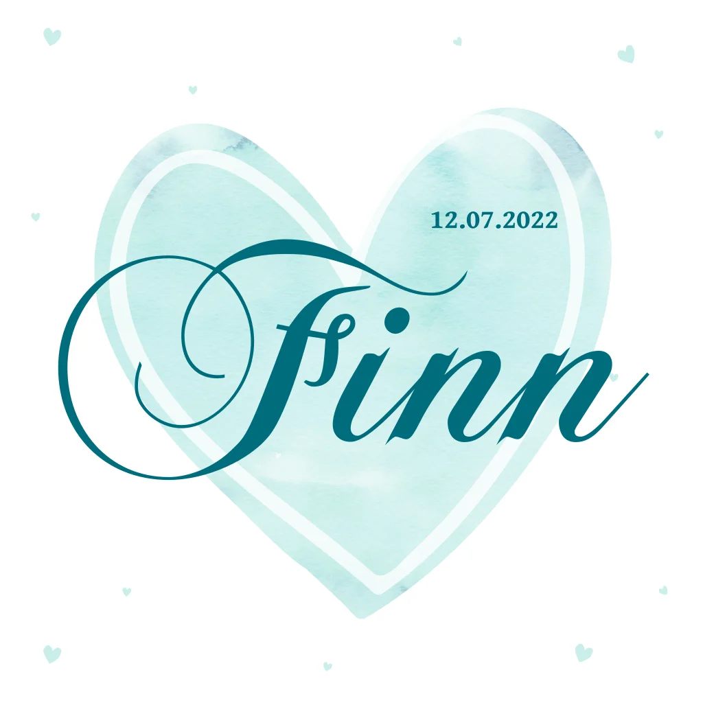 Romantisch geboortekaartje voor jongen met blauw watercolour hart en sierlijke typografie.