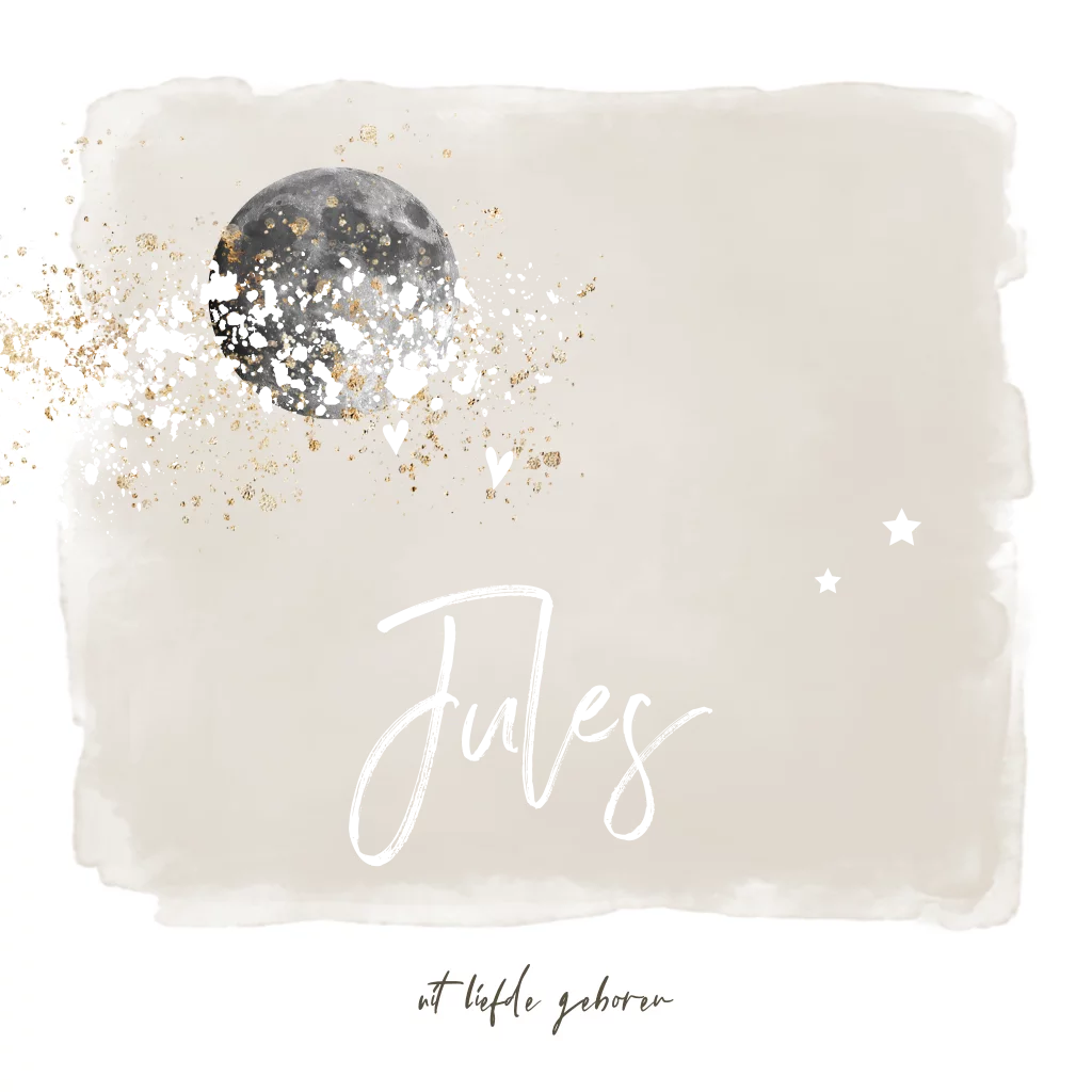 Geboortekaartje hip voor een jongetje in beige kleur met foliedruk en de maan.