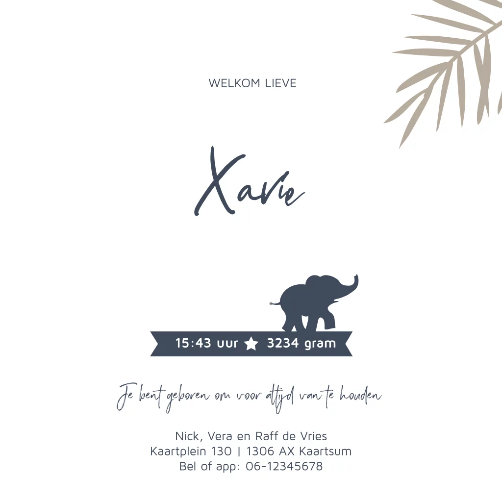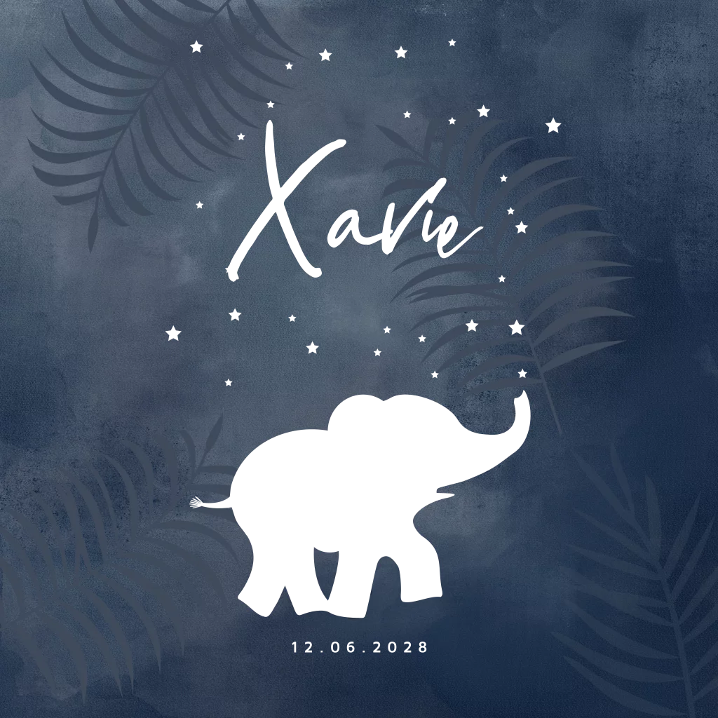 Geboortekaartje hip voor een jongetje met olifantje in foliedruk.