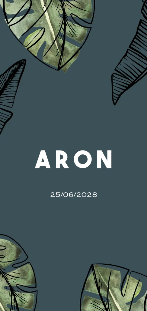 Botanisch geboorte kaartje voor een jongetje met groene bladeren en foliedruk.