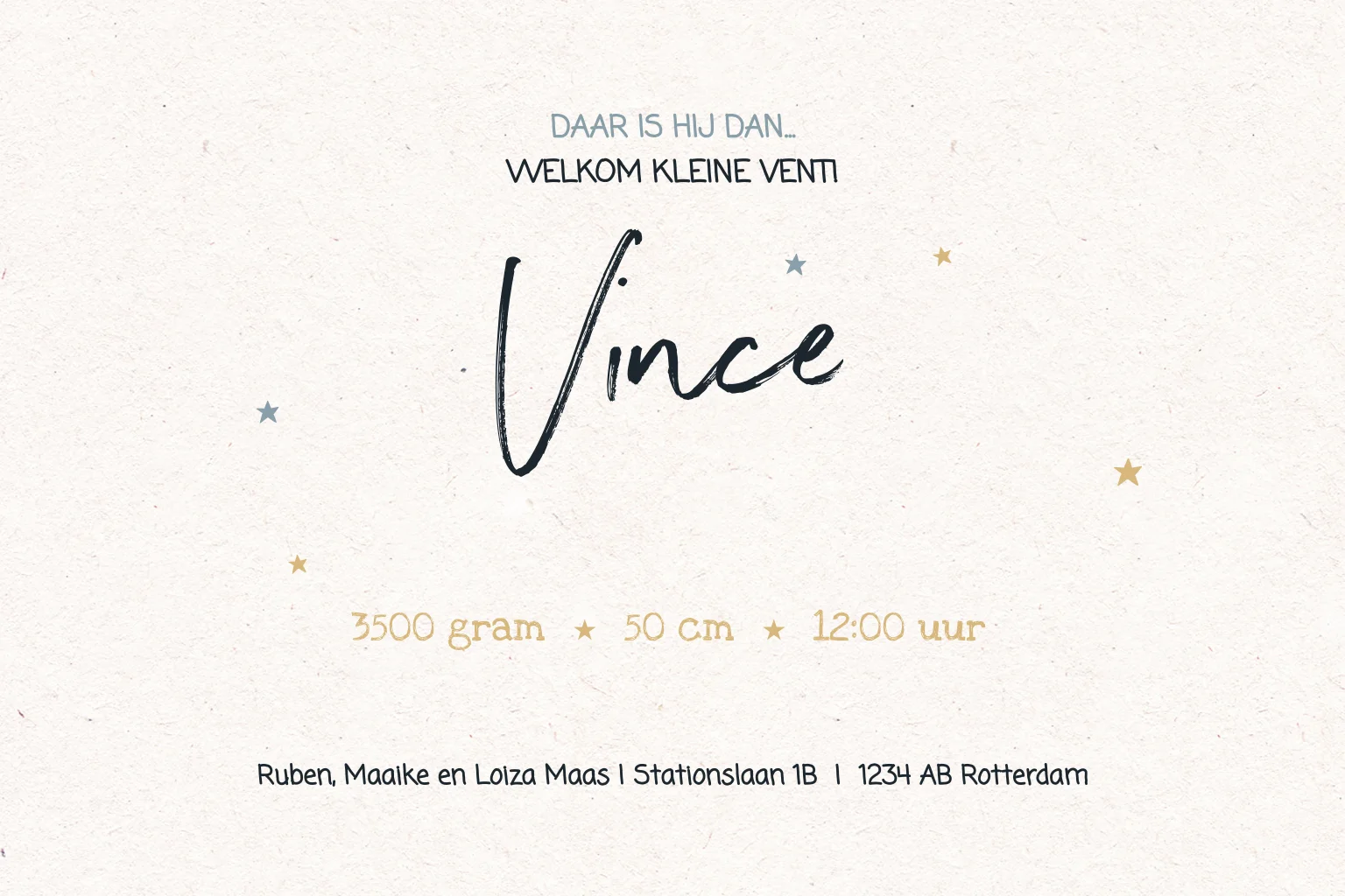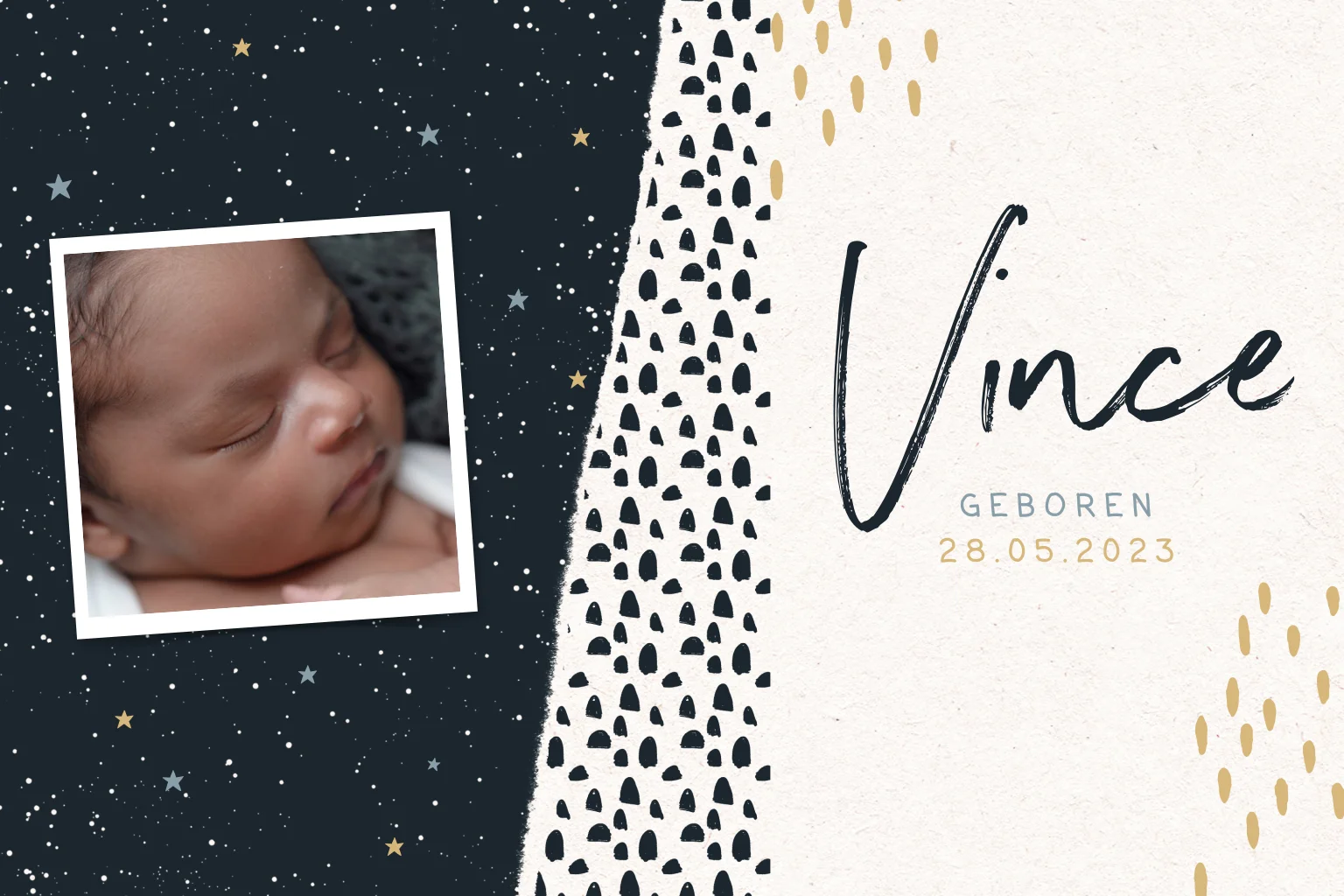 Stoer geboortekaartje jongen eigen foto en sterrenhemel