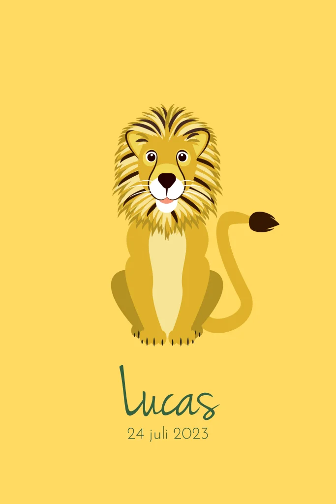 Hip geboortekaartje voor een jongen met een leeuw. (3592)