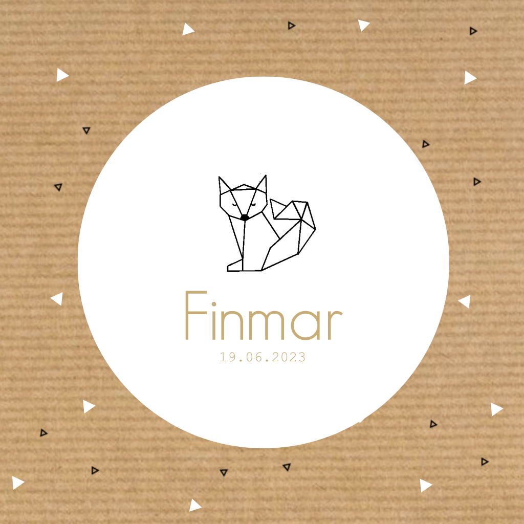 Hip geboortekaartje jongen met geometrische vos en kraft achtergrond