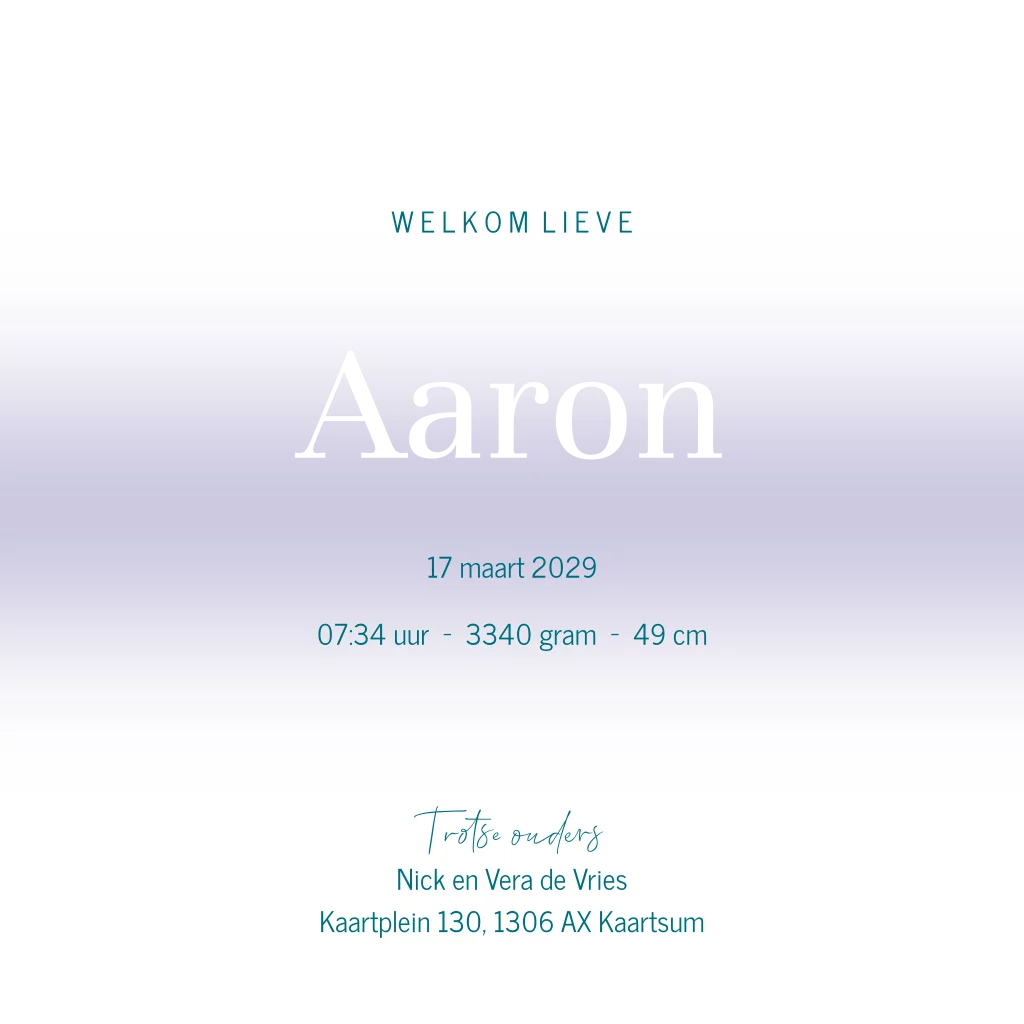 Hip geboortekaartje jongen met kleur verloop en foliedruk