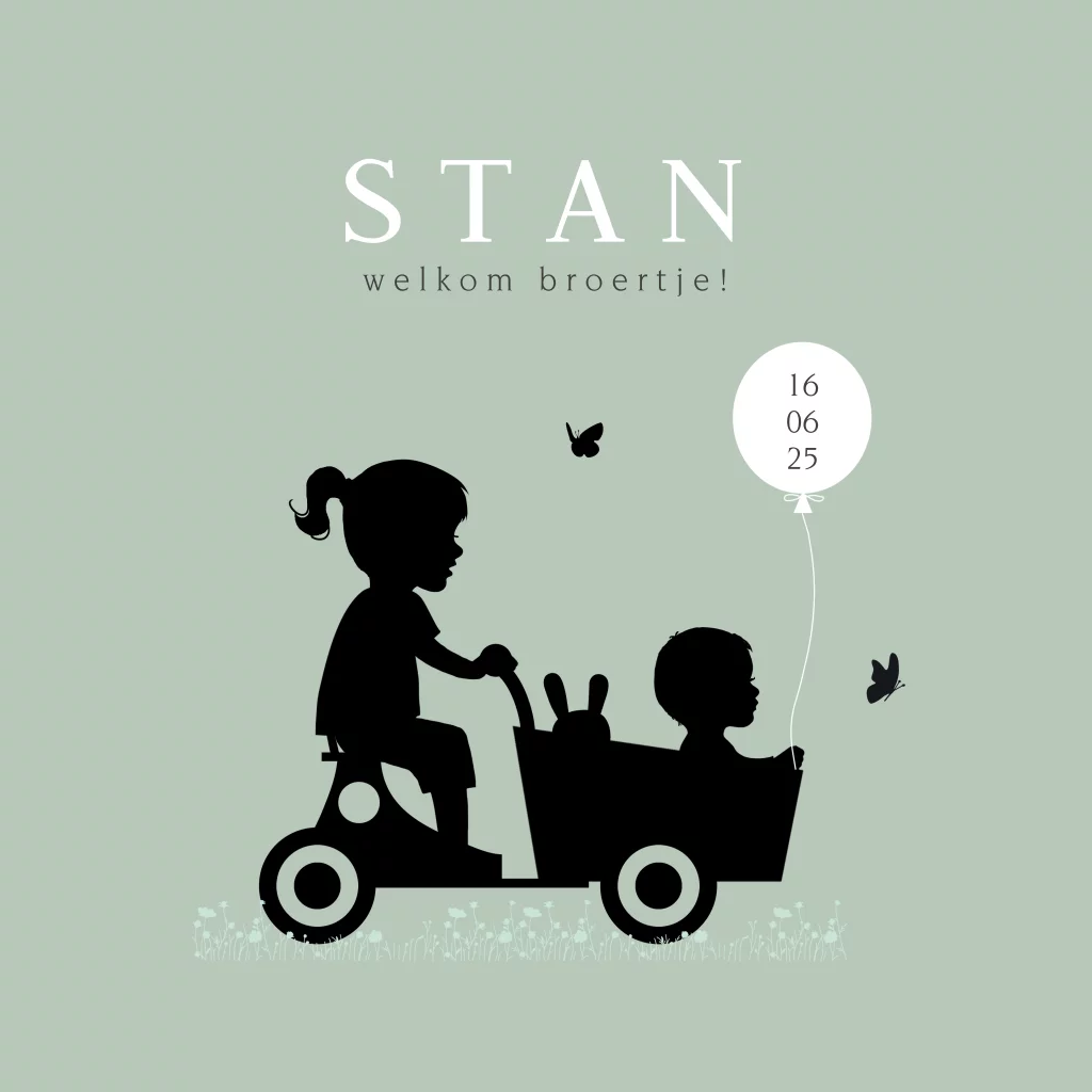 Leuk geboortekaartje jongen met zusje in bakfietsje