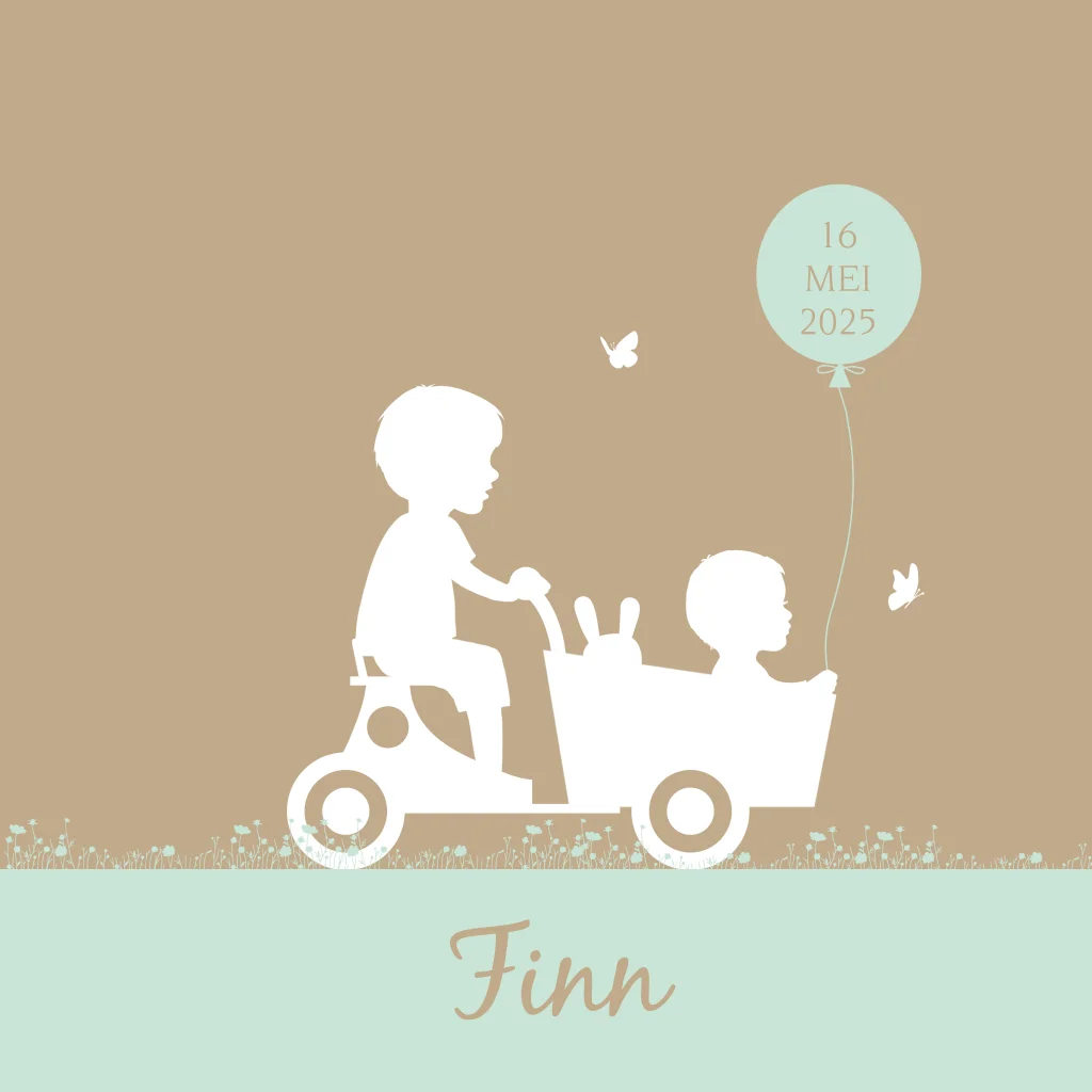 Hip geboortekaartje kraft jongen met broertje in bakfietsje