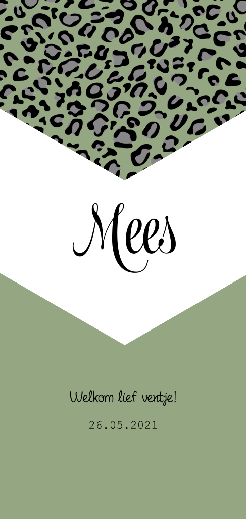 Hip langwerpig geboortekaartje panter print voor een jongetje.