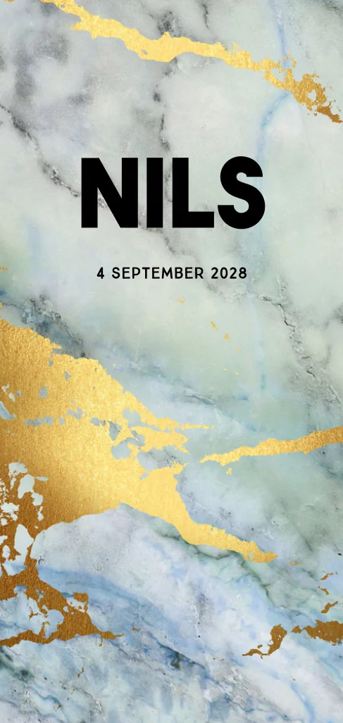 Geboortekaartje hip voor een jongetje met goud en marmer look.