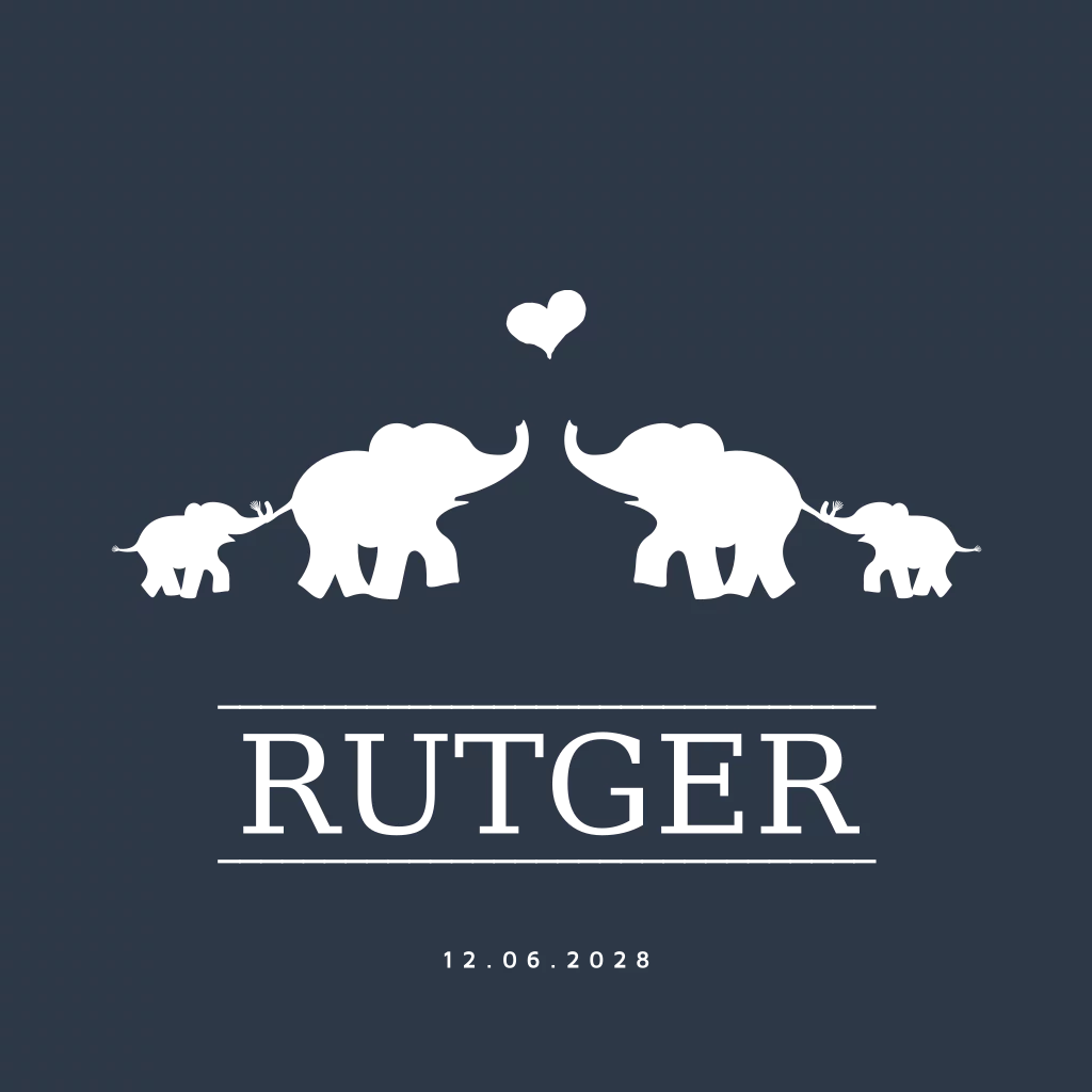 Geboortekaartje hip voor een jongetje met olifantjes in foliedruk. Voor een tweede kindje of jongens tweeling.