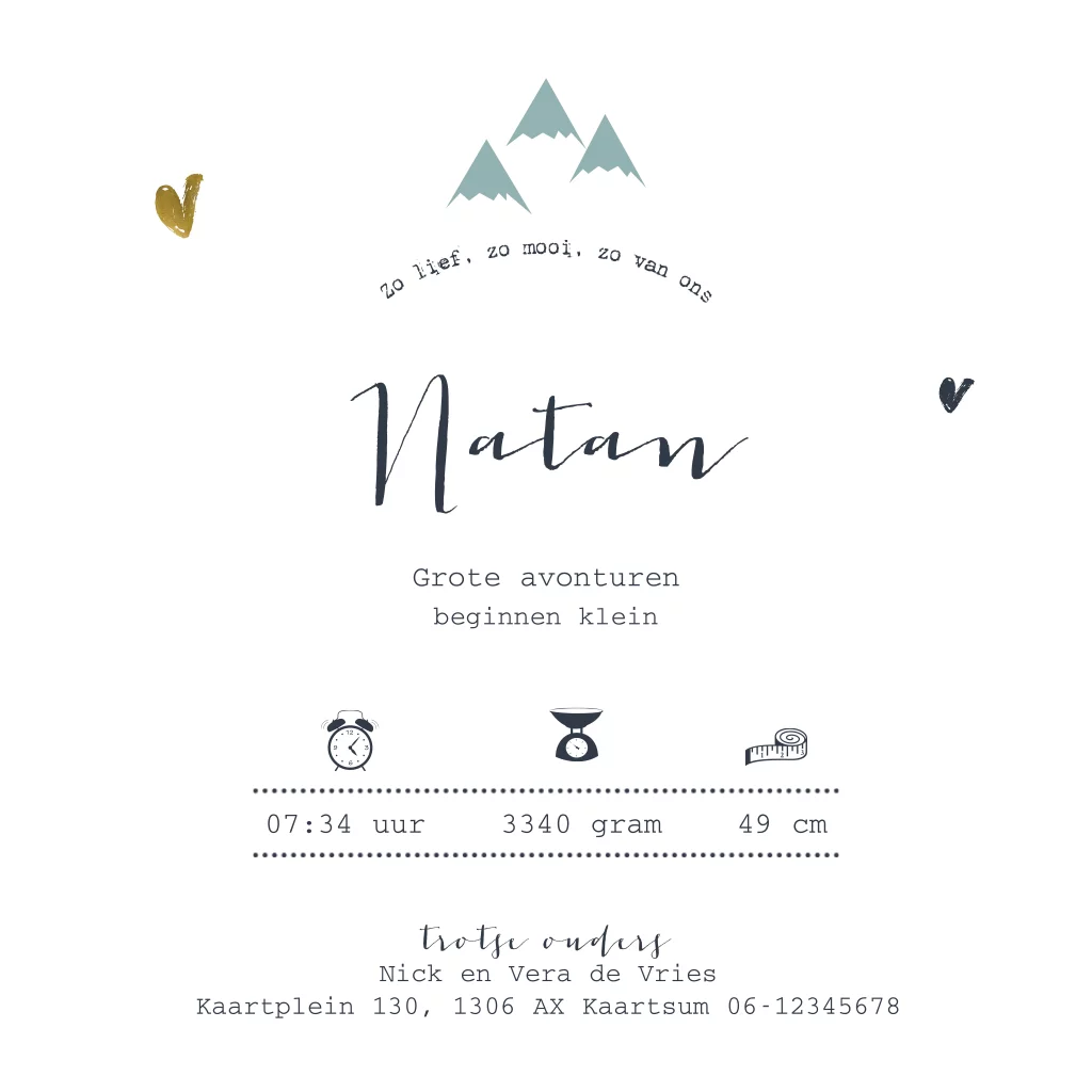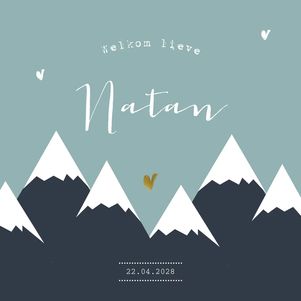 Geboortekaartje hip voor een jongetje met winterse bergen.