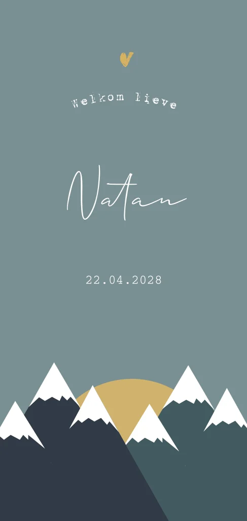Geboortekaartje hip voor een jongetje met winterse mountains.