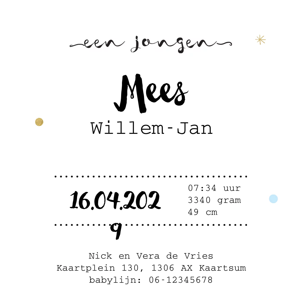 Hip geboortekaartje jongen met grote blauwe aquarel ballon.