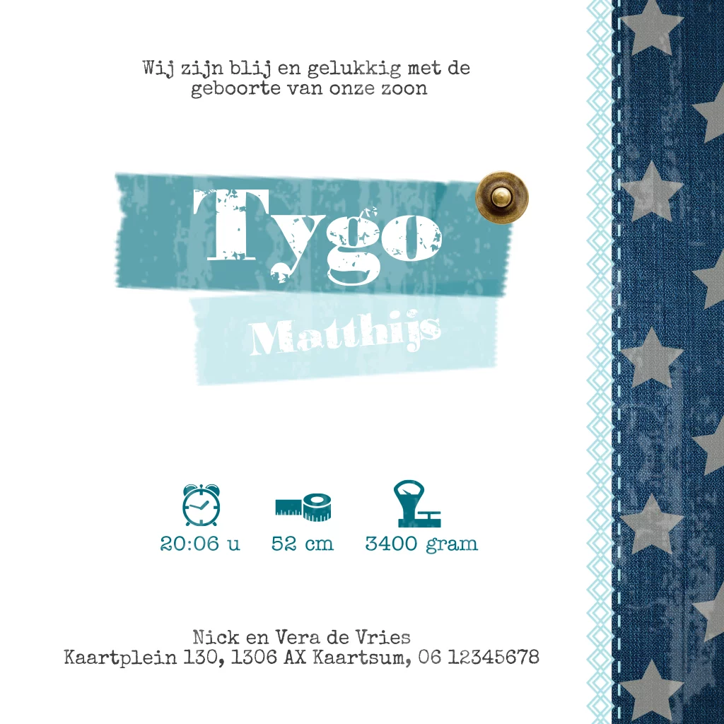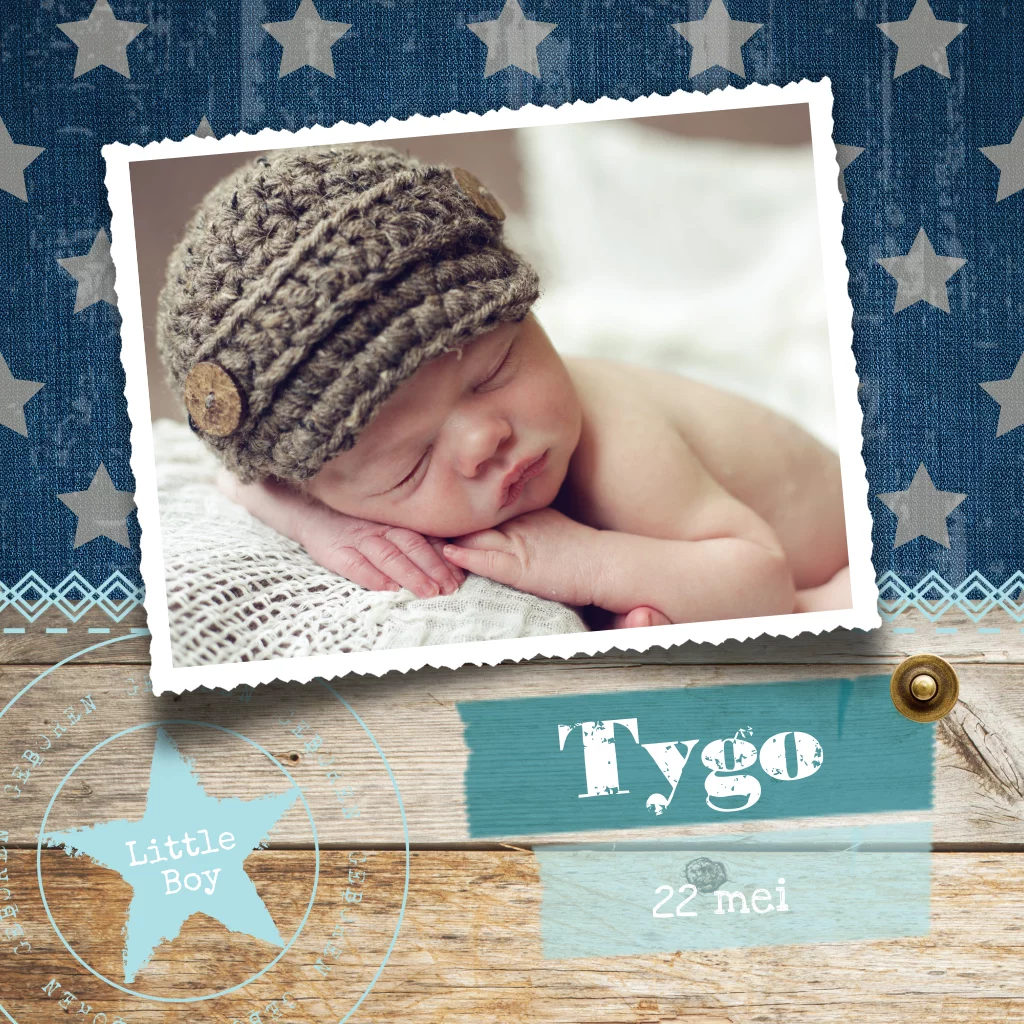 Jongens geboortekaartje stoer met sterren en eigen foto