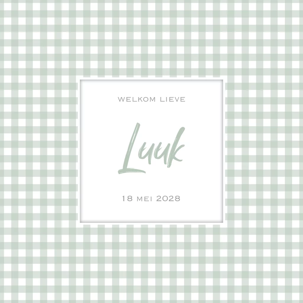 Klassiek babykaartje jongen met groen ruitjes patroon.