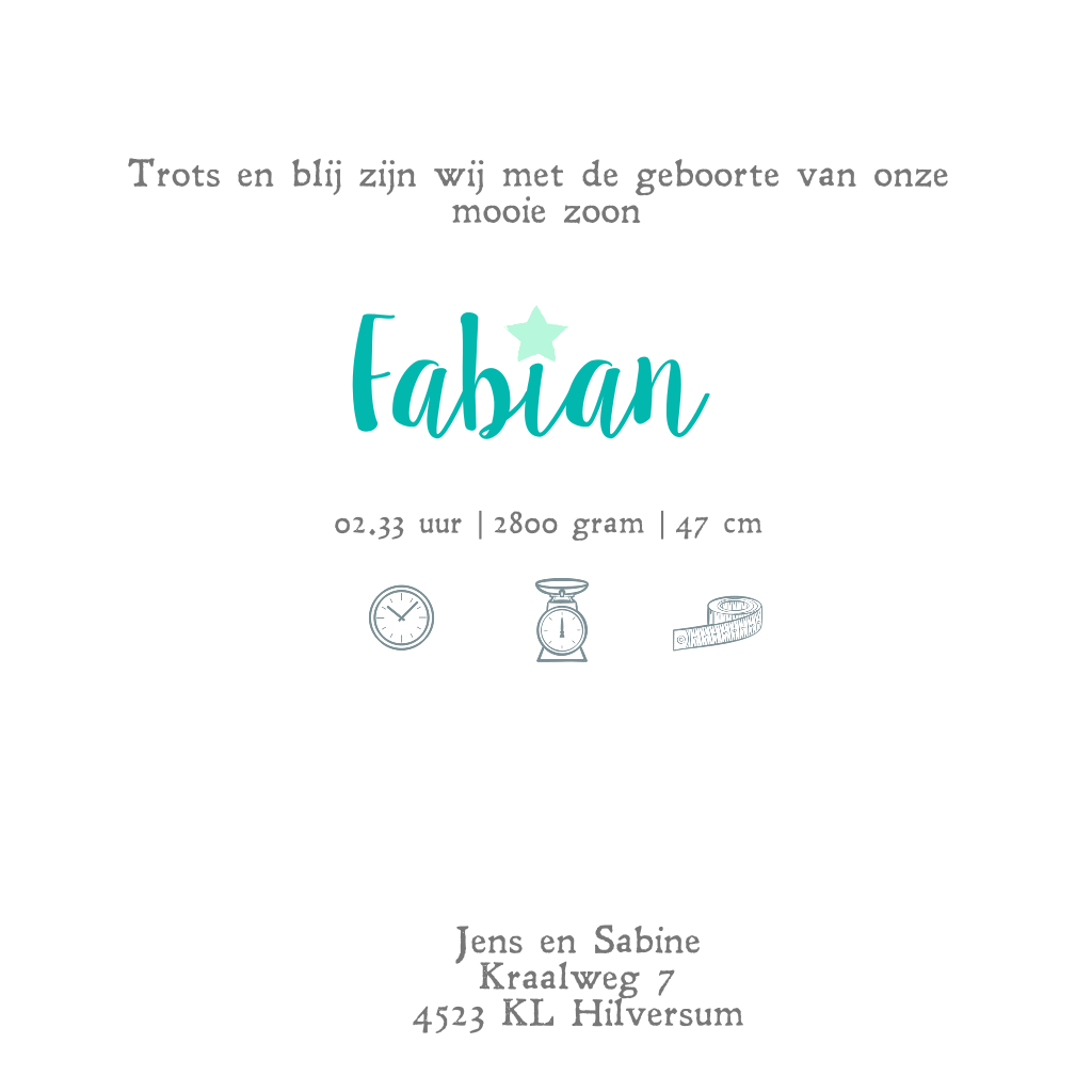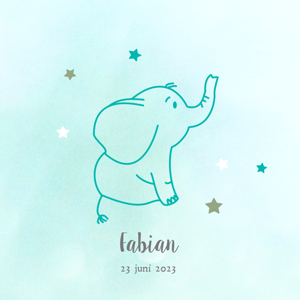 Lief en hip geboortekaartje voor een jongen met olifantje en aquarel. (280)