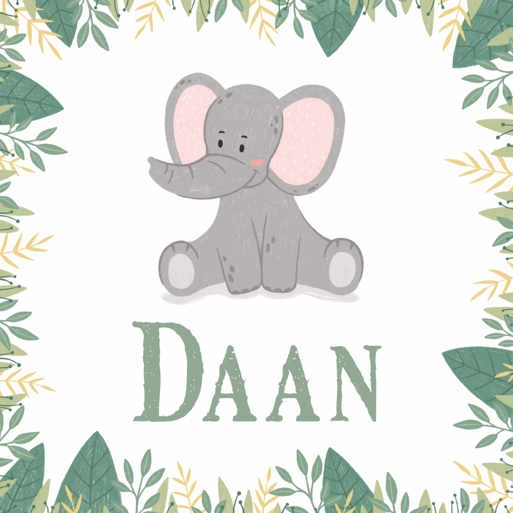 Geboortekaartje met een lief getekend olifantje met jungle achtergrond. (4357)