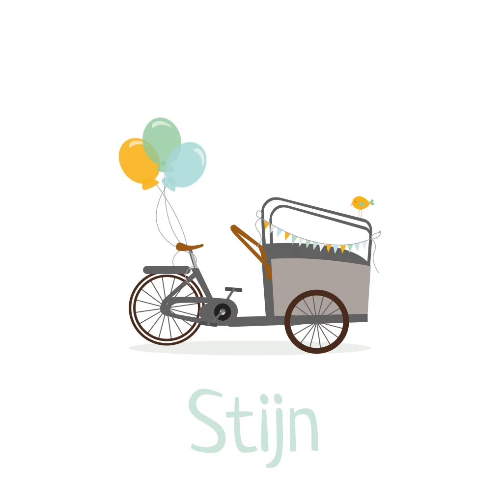 Lief geboortekaartje met een bakfiets in pastelkeuren