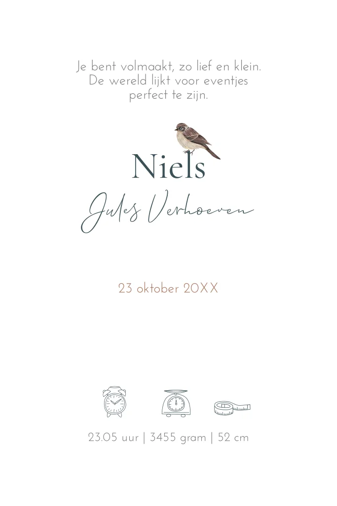 Lief geboortekaartje bosdieren hertje vos uil en goudfolie