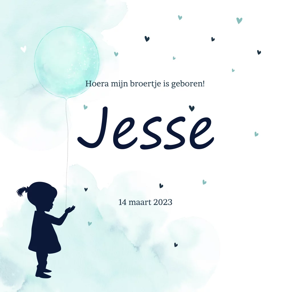 Lief geboortekaartje broertje watercolour mint silhouet