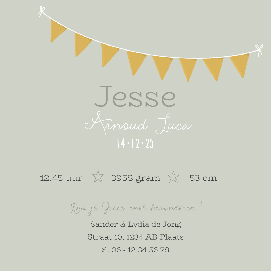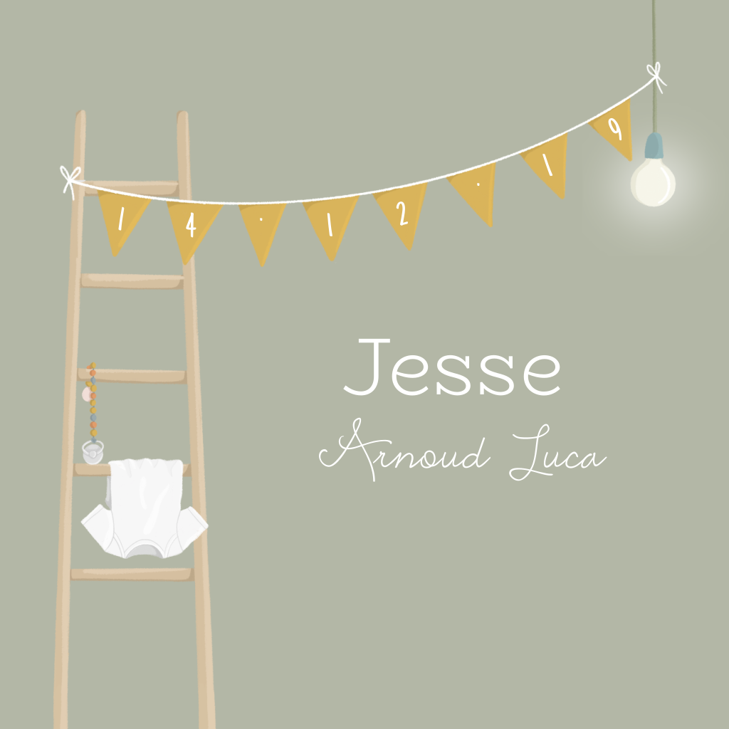 Lief geboortekaartje jongen met trap en slinger