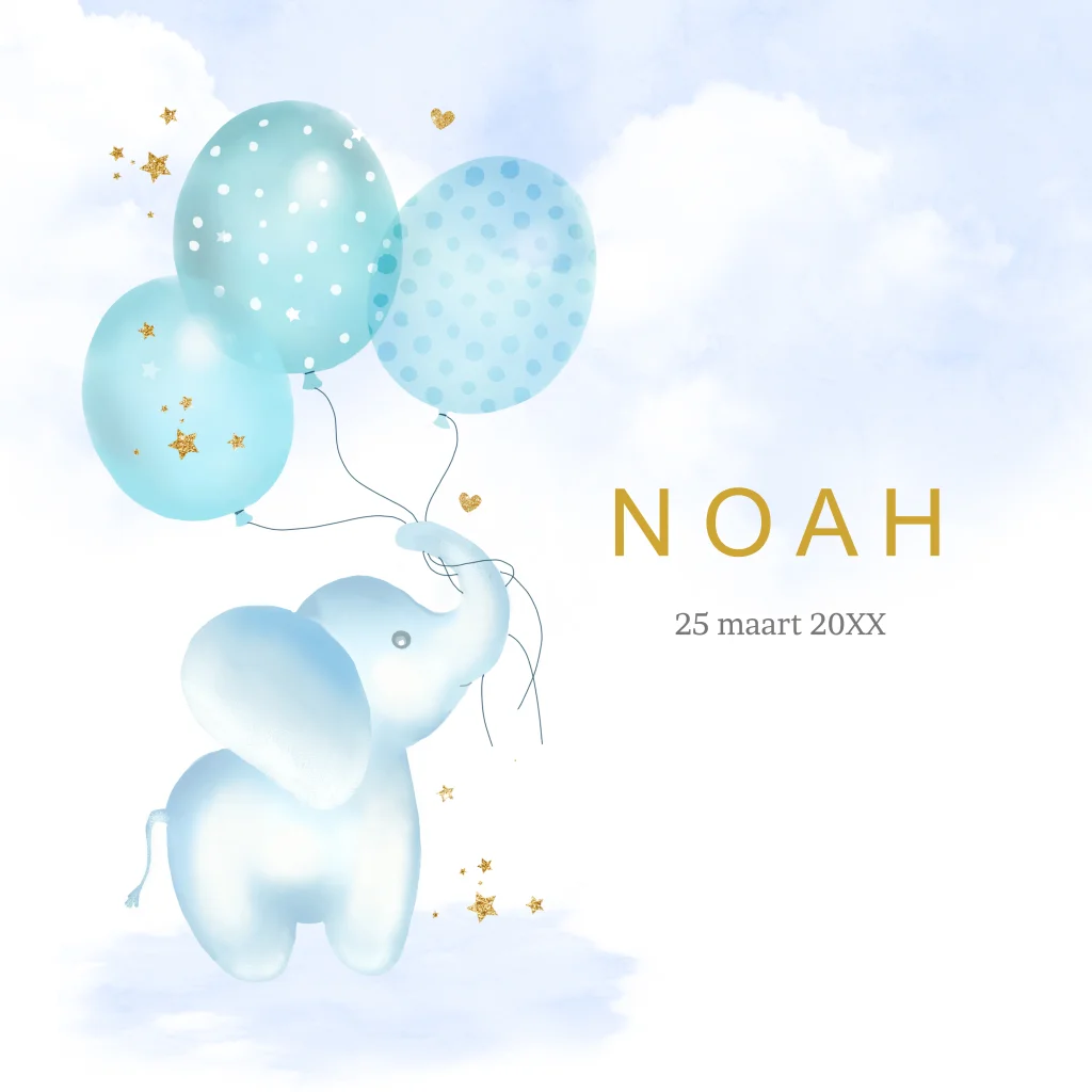 Geboortekaartje met een olifant en ballonnen voor een jongen