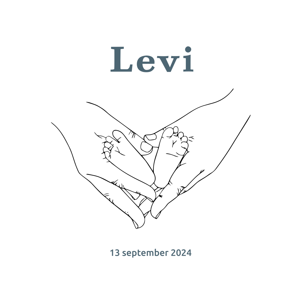 Lief geboortekaartje met getekende baby voetjes jongen. (3832)